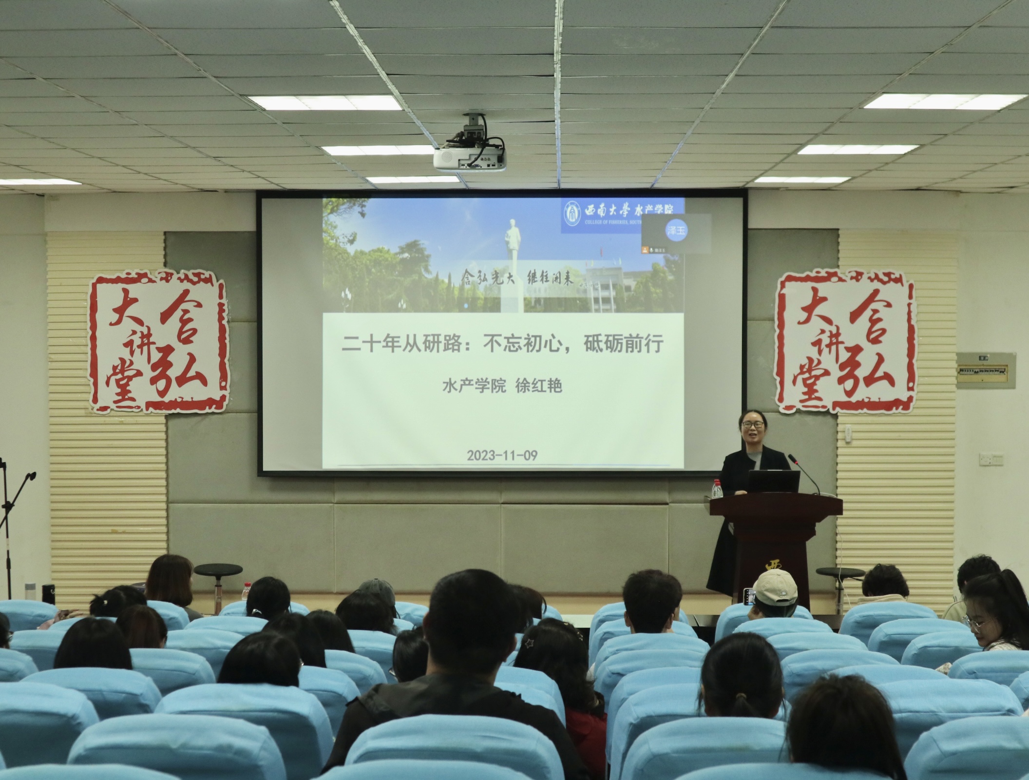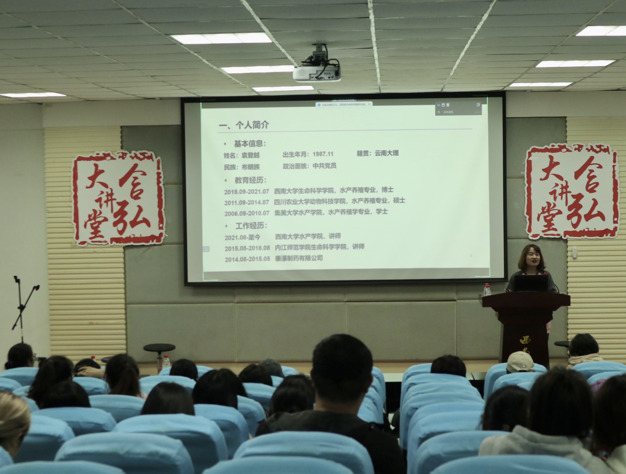 2023年11月9日晚,含弘大讲堂之“研途相伴,明灯引航”主题研途分享会在动物医学院二楼报告厅举行。本次讲座邀请水产学院教授、博士生导师徐红艳和水产学院讲师袁登越老师担任主讲人。betway西汉姆联研究生会代表、水产学院研究生会、动物医学院研究生会以及两学院2021级、2022级、2023级研究生参加了此次讲座。