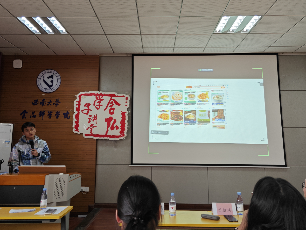 王启明同学就最近热点讨论的预制菜展开交流。首先,她介绍了预制菜的内涵和发展背景,运用专业知识准确给出预制菜定义,将预制菜进行分类,并指出预制菜顺应了当今时代需求。随后,讲述了预制菜生产工艺,并展示了具体产品预制小酥肉生产的全过程。最后,指出预制菜发展的主要问题和风险并就预制菜的发展前景做出展望。预制菜存在消费者知情权问题和食品安全风险,且未来的预制菜行业要向着安全化、营养化、多元化、智能化的方向发展。