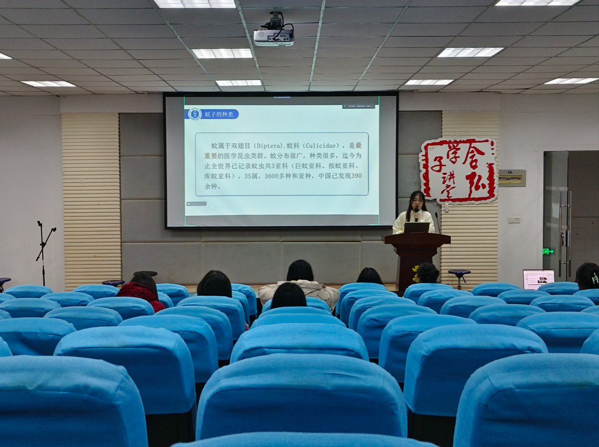 代丽同学围绕蚊子的偏好、吸血过程等内容对“为什么蚊子喜欢咬某一类人”这一问题作出解答,通过讲解蚊子带来的疾病传播等危害,介绍目前防蚊手段的研究进展,为防止蚊虫叮咬、减少蚊虫侵害提供有效解决方案,促进同学们不断提高防蚊意识。