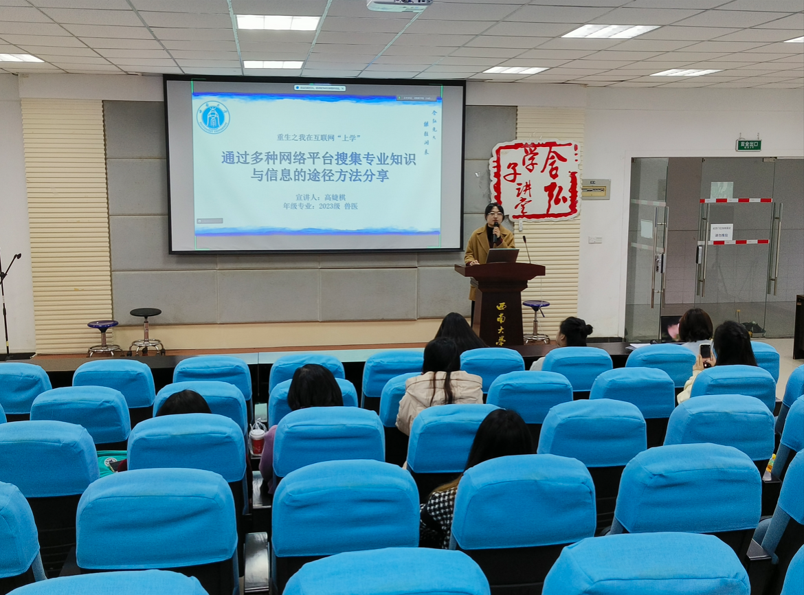 2023年11月30日上午,含弘学子讲堂之“孜孜不懈,学研并举”专题论坛在北碚校区动物医院报告厅和荣昌校区7B212举行。本次论坛邀请辅导员李艳梅老师和陈向阳老师出席,由来自动物医学院的2023级硕士研究生代丽同学、高婕棋同学、位格格同学担任主讲人。betway西汉姆联研究生会代表、动物医学院研究生会及学院2022级、2023级研究生参加了本次论坛,各学院有兴趣的同学通过线下或腾讯会议线上参与。本次专题论坛旨在提高同学们的学术热情,促进学术交流,为同学们提供一个展示自我、互动学习的平台。