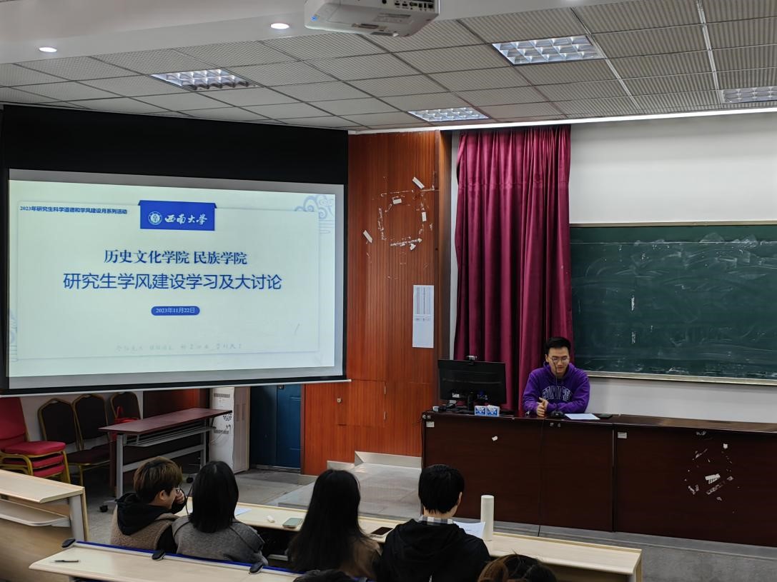 文学院响应学校通知,组织开展2023年“慎思树学风,笃行造良才”研究生科学道德和学风建设月系列活动。