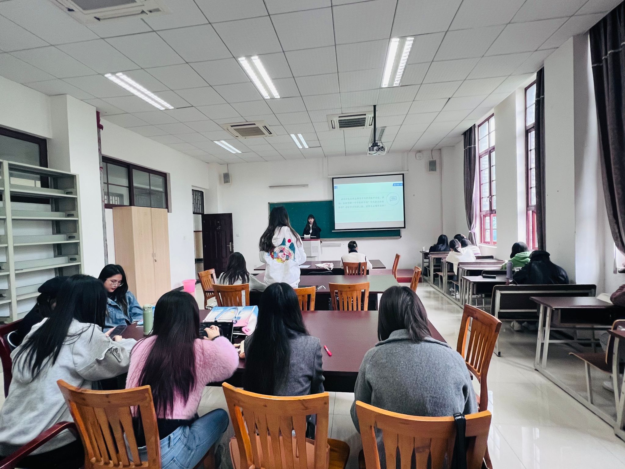 为进一步加强我院校风、学风建设,贯彻我院优良传统。文学院在本单位研究生学风建设月系列活动期间举办了读书会。文学院张荆芳老师以《发条橙》和《活着》两部作品及其同名改编电影为底本,带领同学们共同探讨了文学影视化改编的方式及意义这一问题。文学院时嘉琪老师以矢野龙溪的《经国美谈》为底本,带领同学们深入探讨了该小说的创作与传播所折射出的近代中日两国之境遇这一问题。通过读书会的师生交流活动塑造了良好学风。