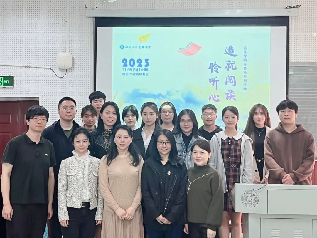 为营造人人“悦”读的良好氛围,促进我院学子养成“爱读书、读好书、善读书”的良好风尚,2023年11月9日,由betway西汉姆联音乐学院音乐学系与音乐研究团共同举办的“造就阅读,聆听心声”——音乐学院美育角系列活动在第16教学楼如期举行。