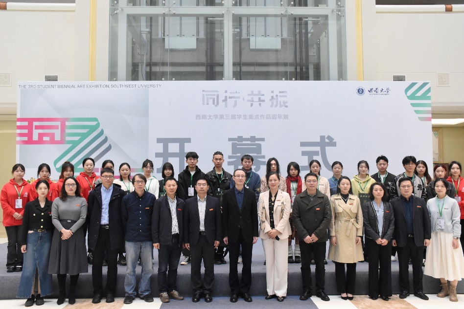 2023年11月9日,“同行·共振”betway西汉姆联第三届学生美术作品双年展在学校博物馆开幕。美术学院院长段运冬致开幕辞,党委研究生工作部部长秦松宣读获奖学生名单,与会领导为获奖学生颁奖,2022级硕士研究生张力丹代表获奖学生发言,学校党委副书记黄杰讲话并宣布展览开幕。展览以“同行·共振”为主题,寓意“与国家同行,与时代共振”。展览展示了青年一代学生扎实的艺术功底、敏锐的创作意识和深厚的家国情怀,体现了观照自然、热爱祖国、扎根人民的艺术观与创作观,彰显了学校青年学生的智慧与激情、创造力和想象力,是课程思政和美育成果的集中展现,也是新时代美术教育“青蓝相接,为往圣继学”的重要对话。学校党委副书记黄杰在讲话中对展览作品题材及质量给予了肯定,并勉励青年学生深入学习贯彻习近平总书记关于文艺工作的重要论述,坚持守正道、走大道、挑大梁、当主角,用青春的朝气让中国艺术的天空更加群星灿烂。美术学院全体研究生参与本次活动。