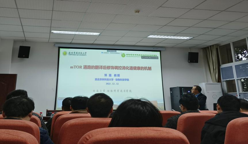 11月28日,动物科学技术学院邀请了马月辉研究员作题为《畜禽濒危遗传资源保护策略和技术》学术报告。报告中,马月辉研究员以详实的数据和生动的语言,阐述了当前畜禽种质资源保护的现状、工作中面临的主要问题、采取的策略方法和技术手段,并对同学们关注的一些前沿问题进行了深度解析。12月12日,动物科学技术学院邀请了邓露教授作题为《mTOR通路的翻译后修饰调控消化道健康的机制研究》报告。此次报告邓露教授主要分享了他在mTOR通路的翻译后修饰调控消化道健康上的研究进展,并分享了自己的科研故事,倡导研究生在科研的道路上应该大胆创新,持之以恒,终得拨云见日。