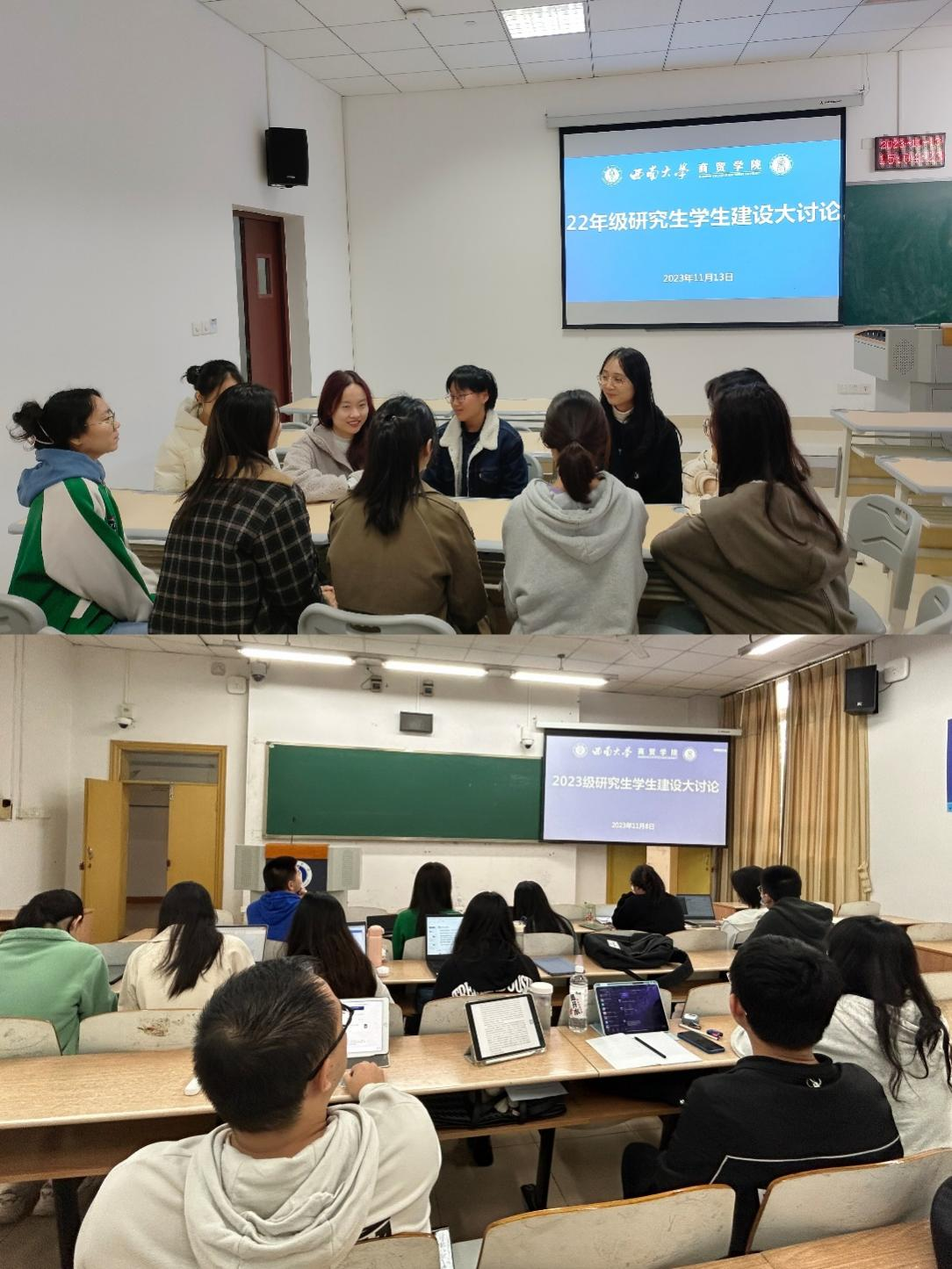 为积极响应学风建设月系列活动,进一步明晰广大研究生对科研与研究生阶段学习的认知,同时帮助新生解决新环境带来的迷茫和困惑,学院全体研究生围绕学风建设主题,结合学科专业特点和实际,就“走好学术科研之路,需要具备哪些条件?”与“你为什么选择读研究生?”等题目,开展了广泛深入的大讨论。
