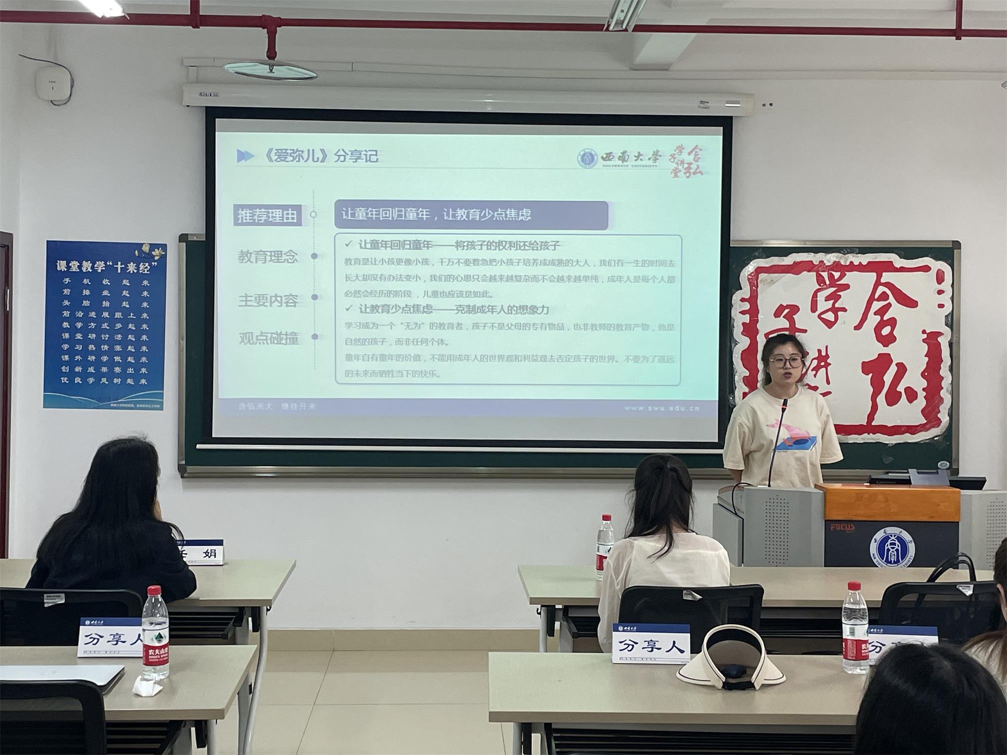 梁婷婷同学分享了《爱弥儿》一书。全书共五卷。前四卷以爱弥儿为主人公,分析儿童自然成长的重要时期以及与之相对应的教育原则、内容和方法。第五卷以卢梭为爱弥儿选定的理想伴侣苏菲为范例,提出女子教育改革的样板。梁婷婷通过四个假定将读者们的观点与卢梭观点进行碰撞,讲解了卢梭笔下的教育理念,并结合自己的想法剖析教育的本质,鼓励同学们积极探索自然的奥秘,丰富我们的精神内核。
