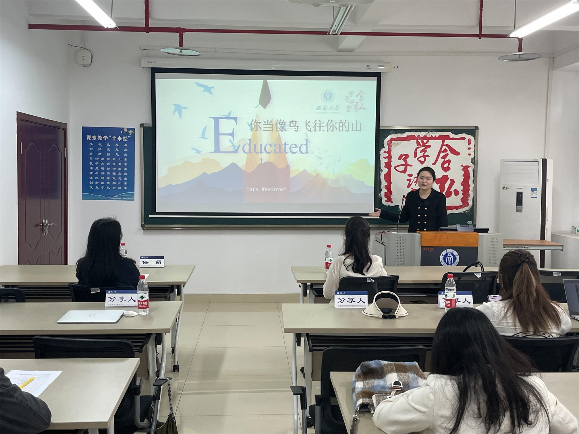 文雅同学分享了《你当像鸟飞往你的山》一书。此书是自传体小说,作者塔拉以教育为主题,从原生家庭落笔,讲述了她独特的成长经历。文雅按照塔拉成长的时间线讲述了塔拉悲惨的原生家庭与努力求学的过程,并对塔拉的成长经历和自我救赎过程进行了详细分析。最后进行了总结,她说也许我们不能完全复刻作者的成功,但却能从她的故事中感受到教育的力量,这将激励着我们飞越万难,找到属于自己的山林。