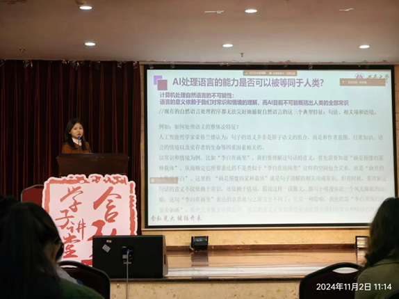 11月2日,含弘学子讲堂之“数智启未来,AI谱新篇”——人工智能与多学科的深度交融跨学科交流分享会在外国语学院101报告厅成功举行。本次活动由betway西汉姆联研究生会主办,外国语学院研究生会、中国新诗研究所研究生会以及计算机与信息科学学院 软件学院研究生会承办。计算机与信息科学学院 软件学院2024级电子信息专业硕士研究生荣怡主持了本次活动,外国语学院2023级英语语言文学专业硕士研究生张雨洁、王佳豪,计算机与信息科学学院 软件学院2024级计算机科学与技术专业研究生向永红、杨李清以及中国新诗研究所2024级中国现当代文学专业硕士研究生曲家慧担任本次活动的主讲人,从多个维度深入分析了人工智能技术与不同学科领域的融合现状及其所带来的深远影响。