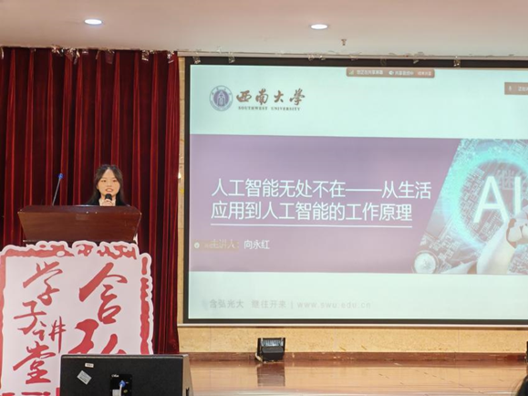 向永红同学分享了“数智启未来 AI谱新篇——人工智能与多学科的深度交融”的主题。她梳理了人工智能的发展历程,解释其基本原理,并展示了AI在图像识别、自然语言处理等领域的广泛应用,并分析了AI在医疗健康、教育、金融等多学科融合中的巨大潜力。同时,她也和在场研究生一起探讨了人工智能带来的伦理问题,呼吁大家共同为构建一个负责任、可持续的人工智能未来而努力。