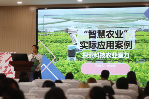 曾茂娅同学通过精准灌溉、智能温室控制、农业无人机监测等多项技术及应用场景,诠释了智慧化农业技术在生产变革中的应用。她认为应加强政策扶持、资金支持,为智慧农业成果转化提供保障。同时还应该完善相关技术标准,实行研发激励,鼓励院校立足产业问题,跻身研发前沿。