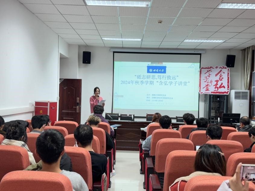 12月8日晚上,含弘学子讲堂之“砥志研思,笃行致远”主题交流分享会在37号教学楼223举行,本次活动由betway西汉姆联研究生会主办,动物科学技术学院研究生会、研究生团总支承办。动物科学技术学院2023级畜牧硕士研究生李亚茹担任主持人,2023级动物遗传育种与繁殖硕士研究生李嘉悦、2023级畜牧硕士研究生莫昭毅、2024级畜牧硕士研究生张俊秋、2024级动物遗传育种与繁殖硕士研究生廖宇豪、2024级动物遗传育种与繁殖硕士研究生彭丽娟担任分享人,以实际行动传递学子力量。