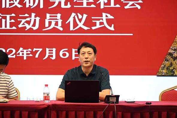 7月6日下午14:00,马克思主义学院2022年暑期研究生社会实践出征动员仪式在学院505报告厅举行,学院党委副书记、纪委书记刘东升和研究生辅导员王飒出席此次出征动员仪式。