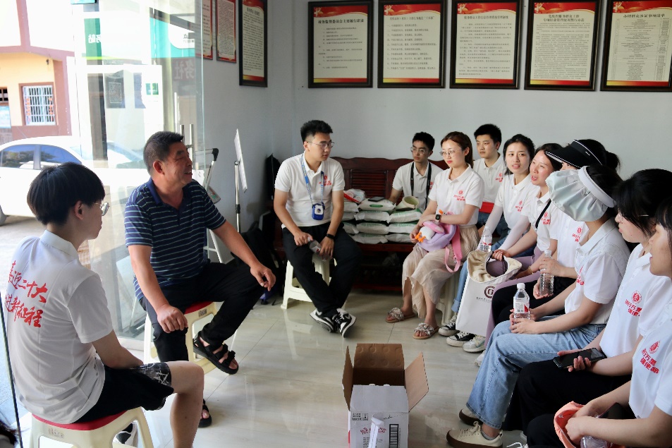 首先,队员们对村支部领导干部们的热情接待表示衷心感谢,向他们介绍了本次实践活动的流程安排,并询问了麻池村的基本情况。村支部书记介绍,麻池村正在从昔日的贫困村向宜居的新农村转型,且取得了较好的阶段性成效。自脱贫攻坚工作开展以来,麻池村旧貌换新颜,村书屋、新时代文明实践中心等民生项目不断升级,村民素质不断提高,村风民风不断改善,老百姓的获得感、幸福感大幅提升。