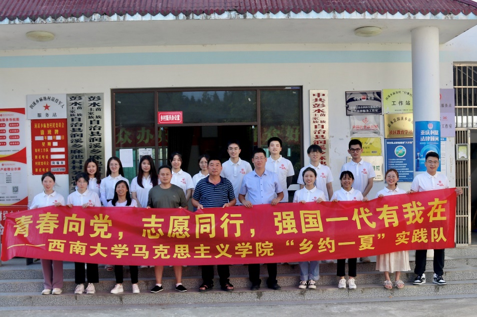 彭水苗族土家族自治县是重庆市多个国家级贫困县之一,,而麻池村则是彭水县多个村镇中从“贫困村”走向“致富路”的典型代表。为响应“乡村振兴”号召,助力乡村发展,betway西汉姆联马克思主义学院“乡约一夏”社会实践队来到彭水苗族土家族自治县润溪乡麻池村,开展以“青春向党 志愿同行 强国一代有我在”为主题的实践活动。
