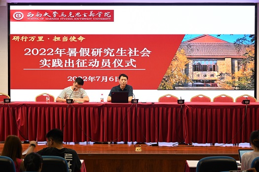 为深学笃用习近平新时代中国特色社会主义思想,引导和帮助广大研究生上好与现实相结合的“大思政课”,在社会课堂中“受教育、长才干、作贡献”,在实践中感悟初心使命、汲取奋进力量,更加坚定科研报国的信心和决心,学院于7月6日下午在505报告厅召开了2022年暑期研究生社会实践出征动员仪式。学院党委副书记、纪委书记刘东升出席本次会议,会议由研究生辅导员王飒主持,2022年暑期社会实践活动全体队员参加。