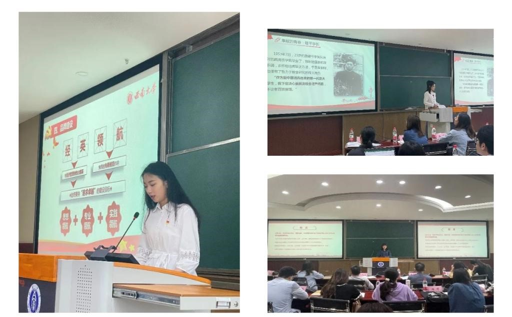 在支部副书记张璨璨详细介绍支部基本情况以及校级样板党支部创建思路后,全体参会人员集中观看了专题视频《奋斗者 正青春 培根铸魂肩使命》。围绕视频内容与会议主题,支部党员陈佳领学了《习近平:坚持党的领导传承红色基因扎根中国大地 走出一条建设中国特色世界一流大学新路》,号召大家坚定理想信念,矢志拼搏奋斗,主动投身实践,努力成长为堪当民族复兴重任的时代新人。学院“经雁”学生党员示范班成员贺文瑾分享了微党课《青春正当时》,她以心系祖国的青春奉献者袁隆平学长、从一无所有到终有所成的青春奋斗者黄国平学长以及扎根基层为人民服务的青春坚守者朱咸永学长作为青春榜样,带领大家领悟青春精神、汲取青春力量。