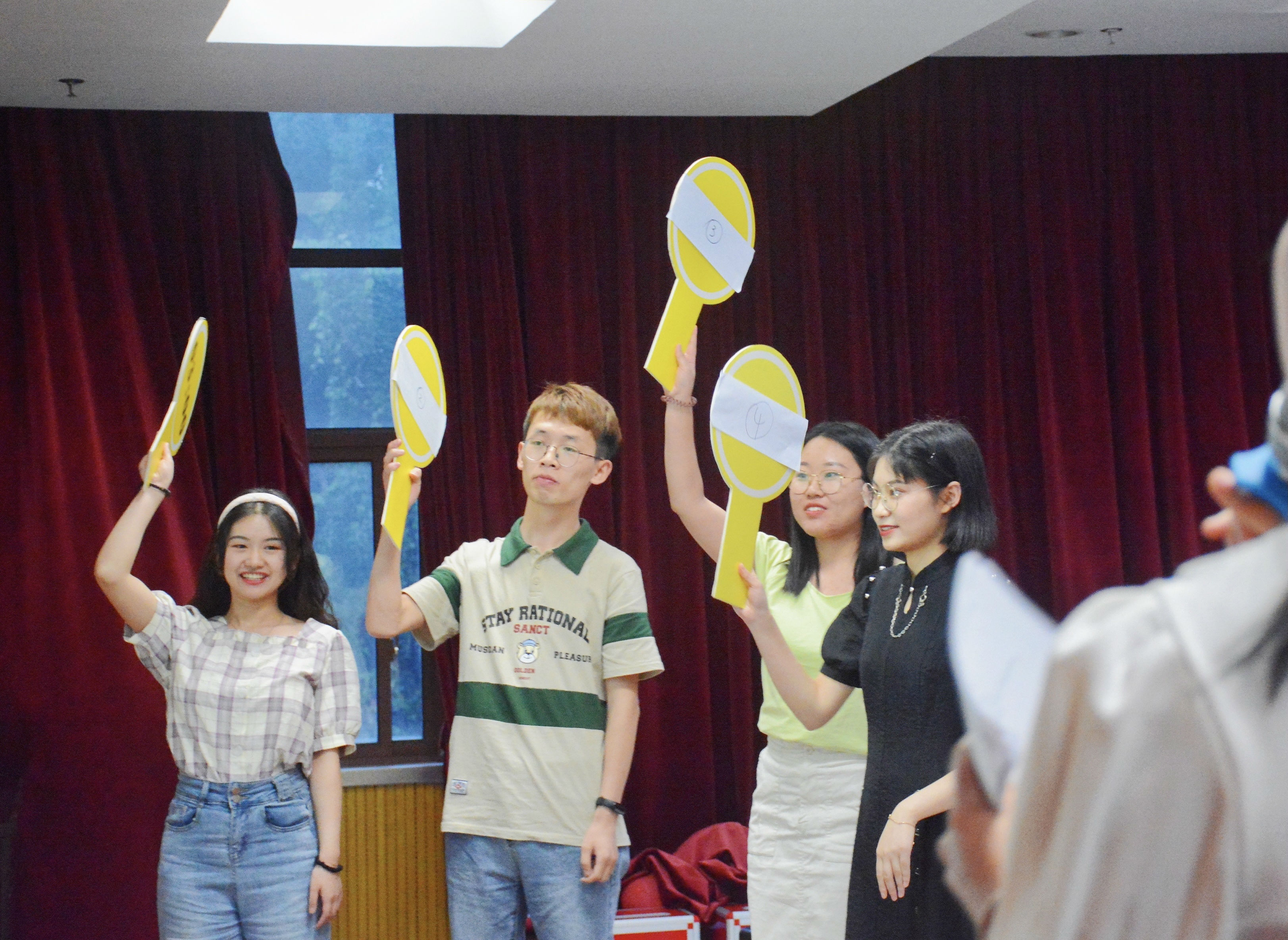 本次知识竞赛分为初赛、复赛和决赛三个阶段进行。四支队伍经过了紧张激烈的初赛和复赛,一路披荆斩棘,脱颖而出。2022年5月24日晚19:00,决赛于外国语学院903报告厅举行。外国语学院研究生辅导员向源、董典,国际学院研究生辅导员汪鑫阳莅临现场指导。四支参赛队伍的亲友团也在线下或线上为选手们加油打气。