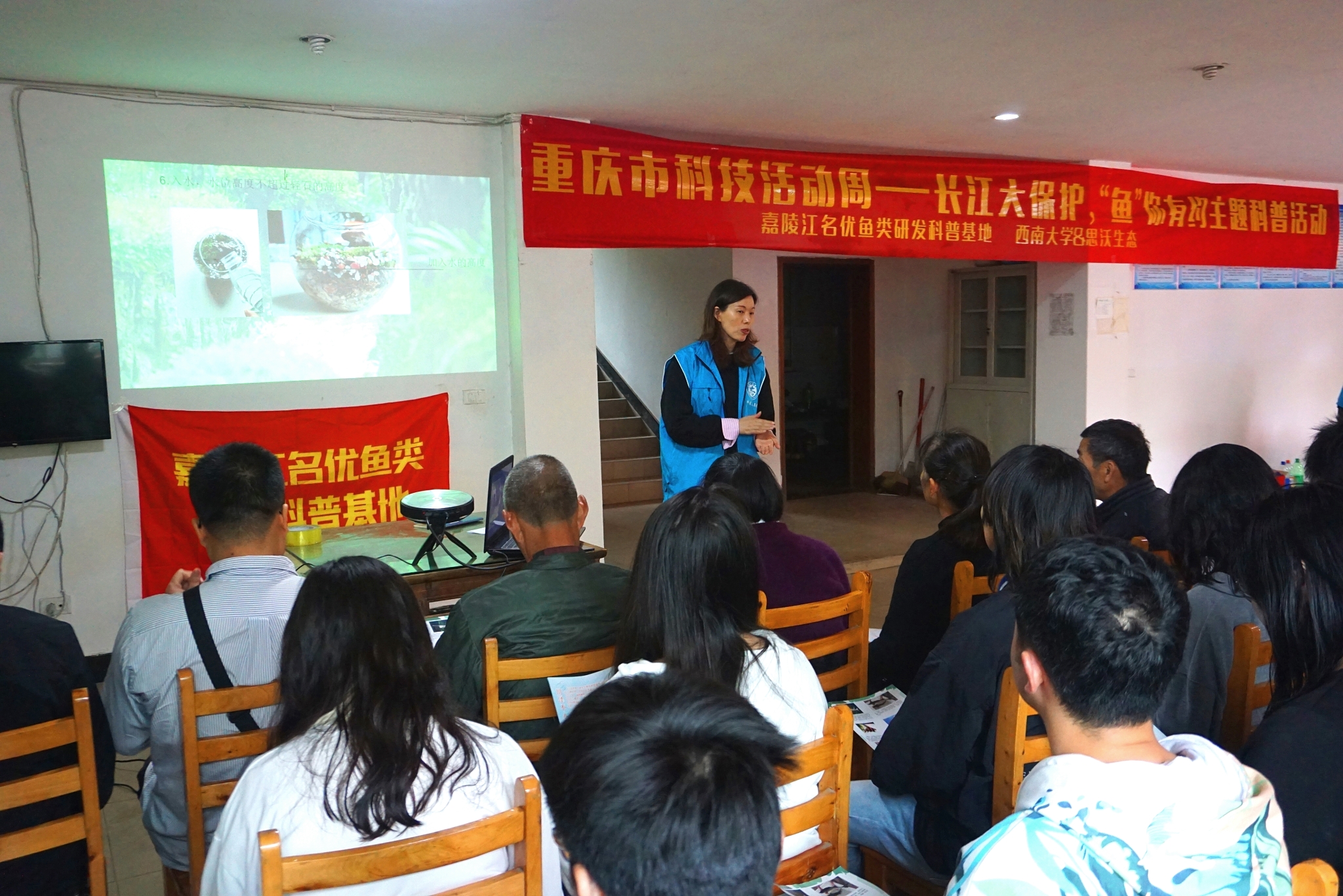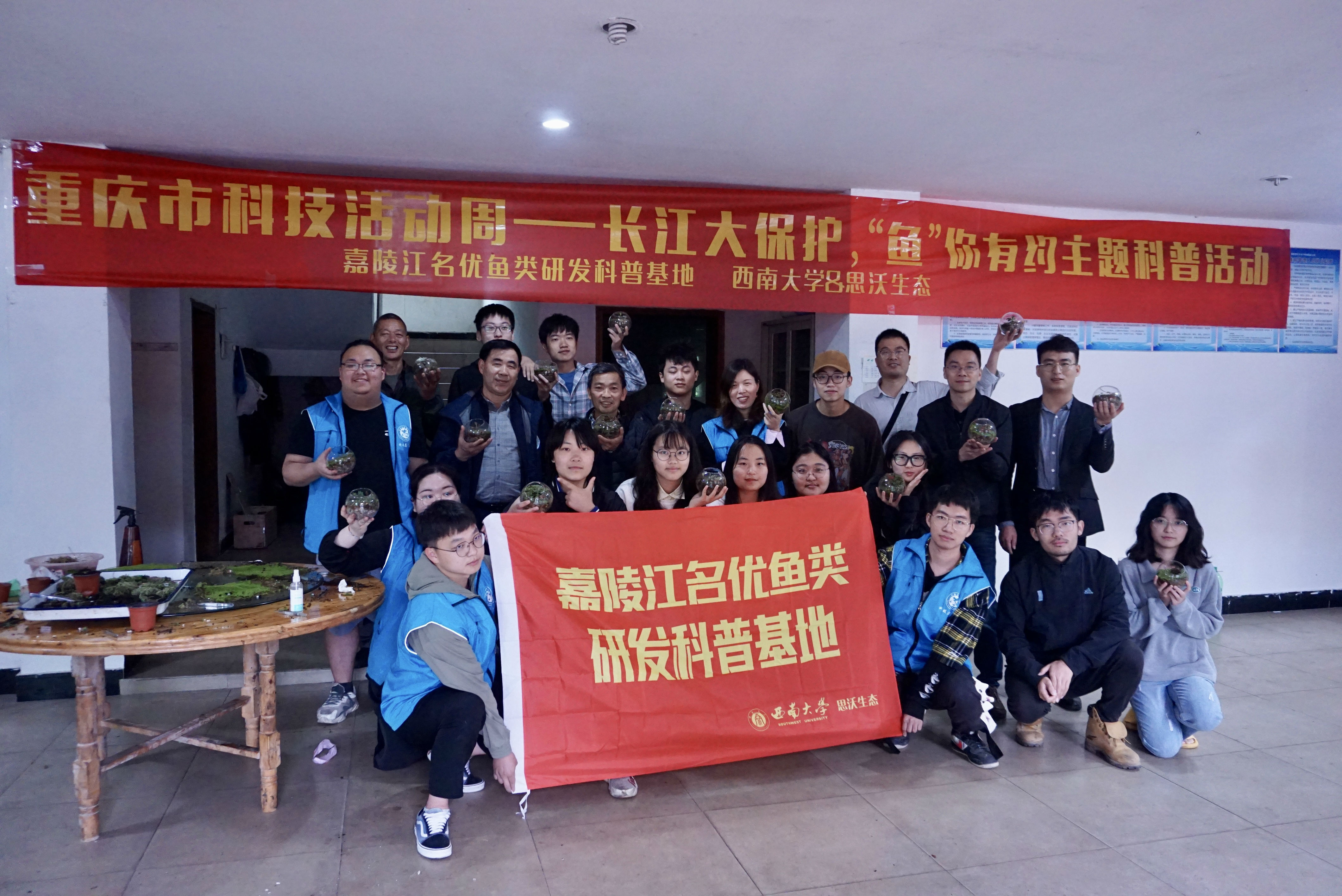 为普及长江重点水域十年禁渔相关规定,贯彻落实保护长江、保护母亲河行动。2022年5月19日下午,由嘉陵江名优鱼类研发科普基地主办,betway西汉姆联水产学院、重庆思沃生态环境科技有限责任公司联合承办的重庆市科技活动周主题科普活动在重庆市静观东平水产有限公司举办。