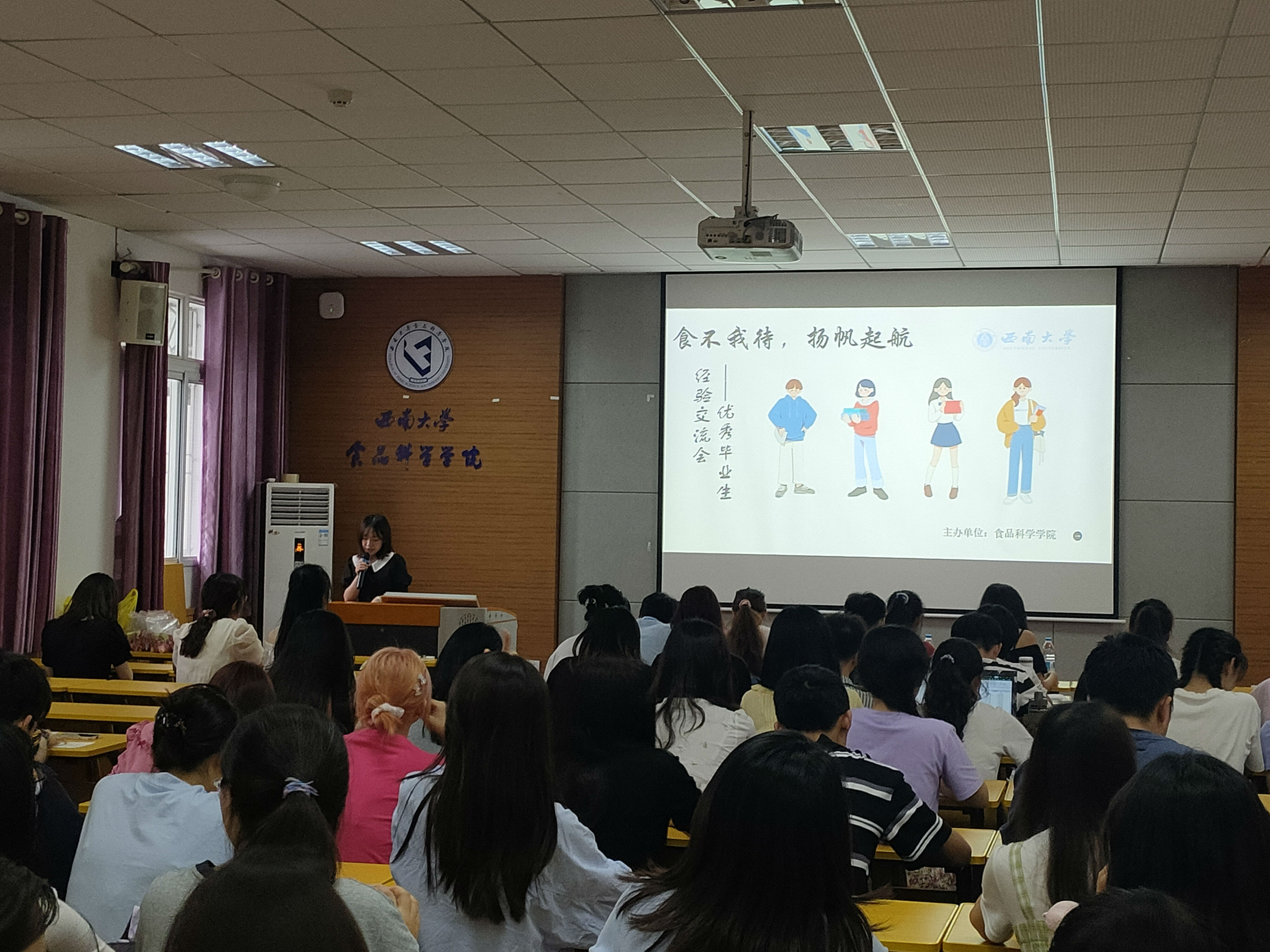 为树立榜样、发挥优秀毕业生的模范带头作用,引导在校研究生积极进取、努力向上,2022年5月13日晚19点“食不我待,扬帆起航”研究生毕业生交流会在食品科学学院39教312会议室举行。此次活动共邀请四位优秀毕业生党员及毕业生代表做经验分享,实践部干事蒋玲主持,共吸引200余名研究生参与。