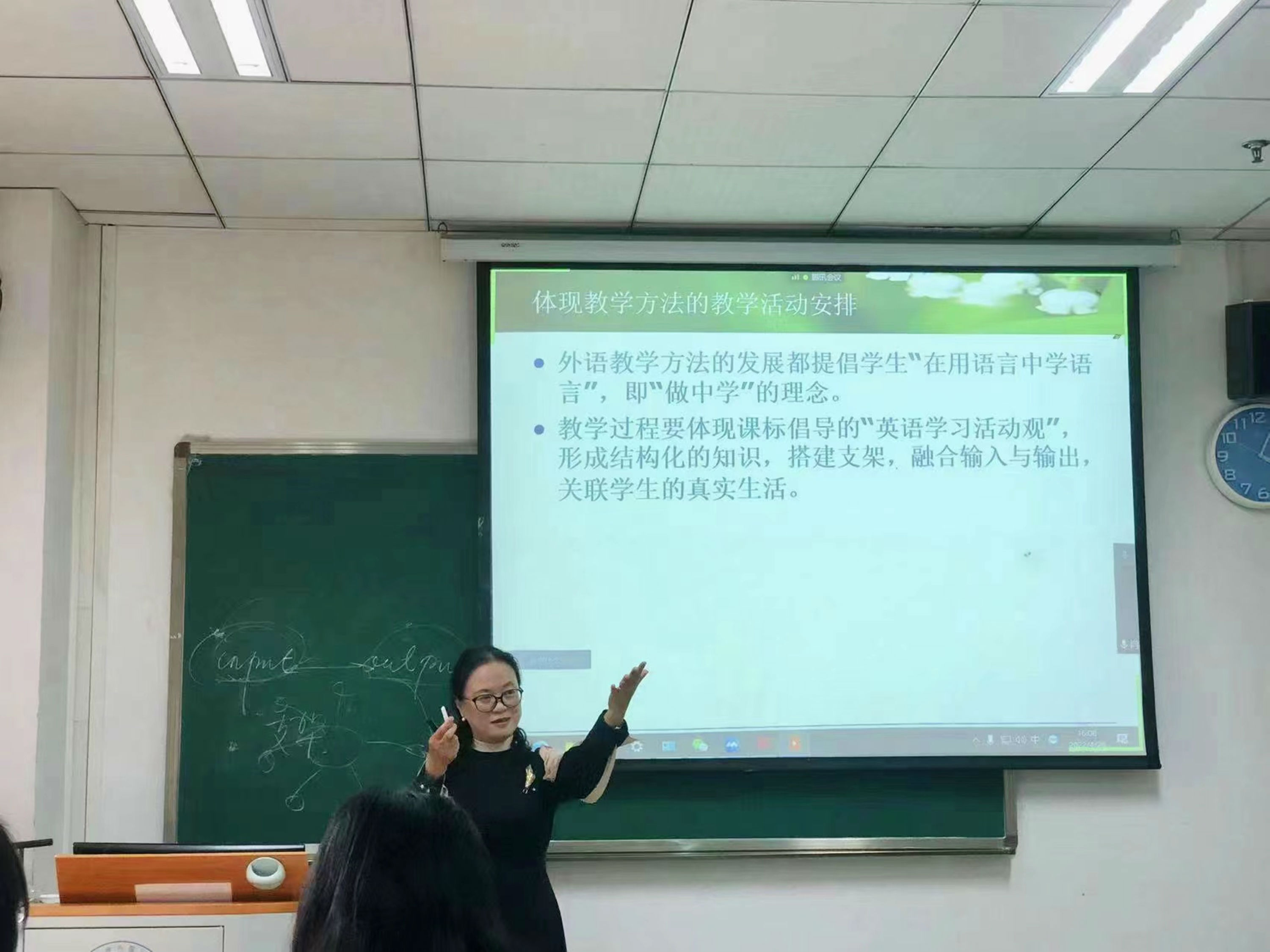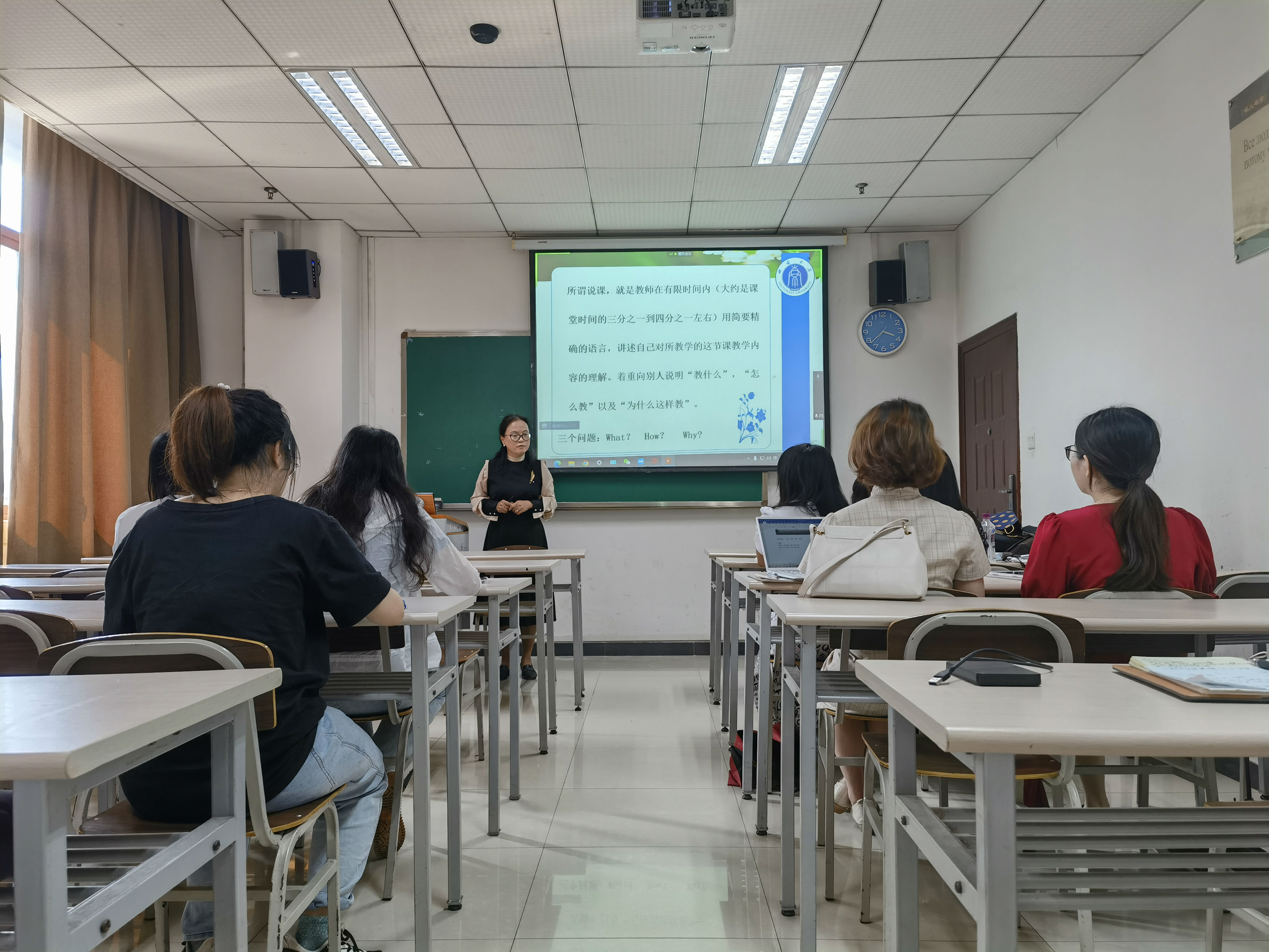 在自由交流环节,线上线下同学踊跃提问,围绕着“如何活跃调动课堂氛围”“如何把握知识点的深难程度”等问题,肖老师结合自身经历和实际案例热情洋溢地进行了互动回应,现场氛围活泼而热烈。