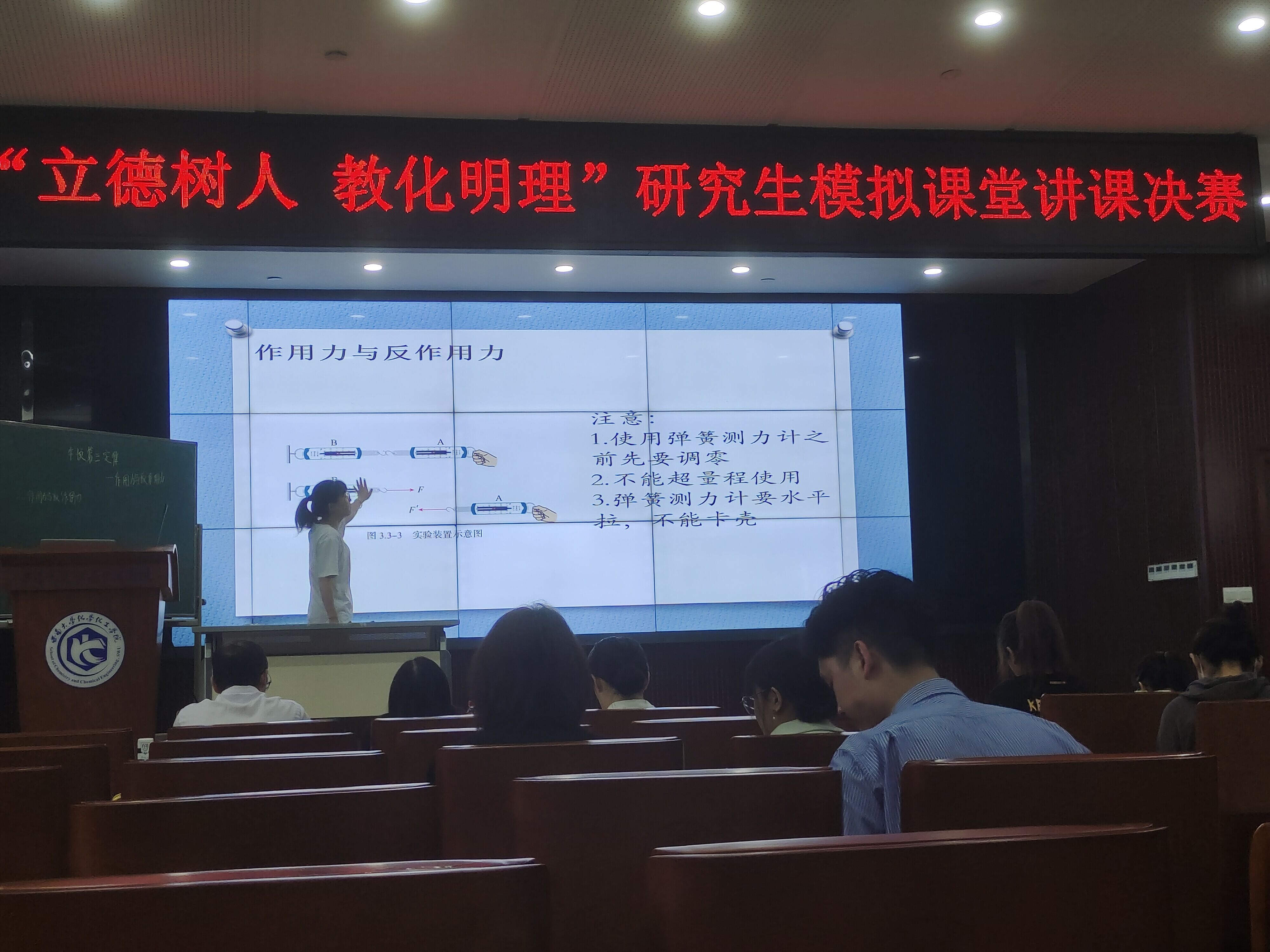 为提升新形势下的人才培养质量,检验当代学生教师技能的掌握情况。同时促进教师教育、一专多能的优质师范生培养。betway西汉姆联物理科学与技术学院学习部于2022年4月23日上午9点至12点在化工与药学实验大楼B114举办了“立德树人 教化明理”研究生模拟课堂决赛。