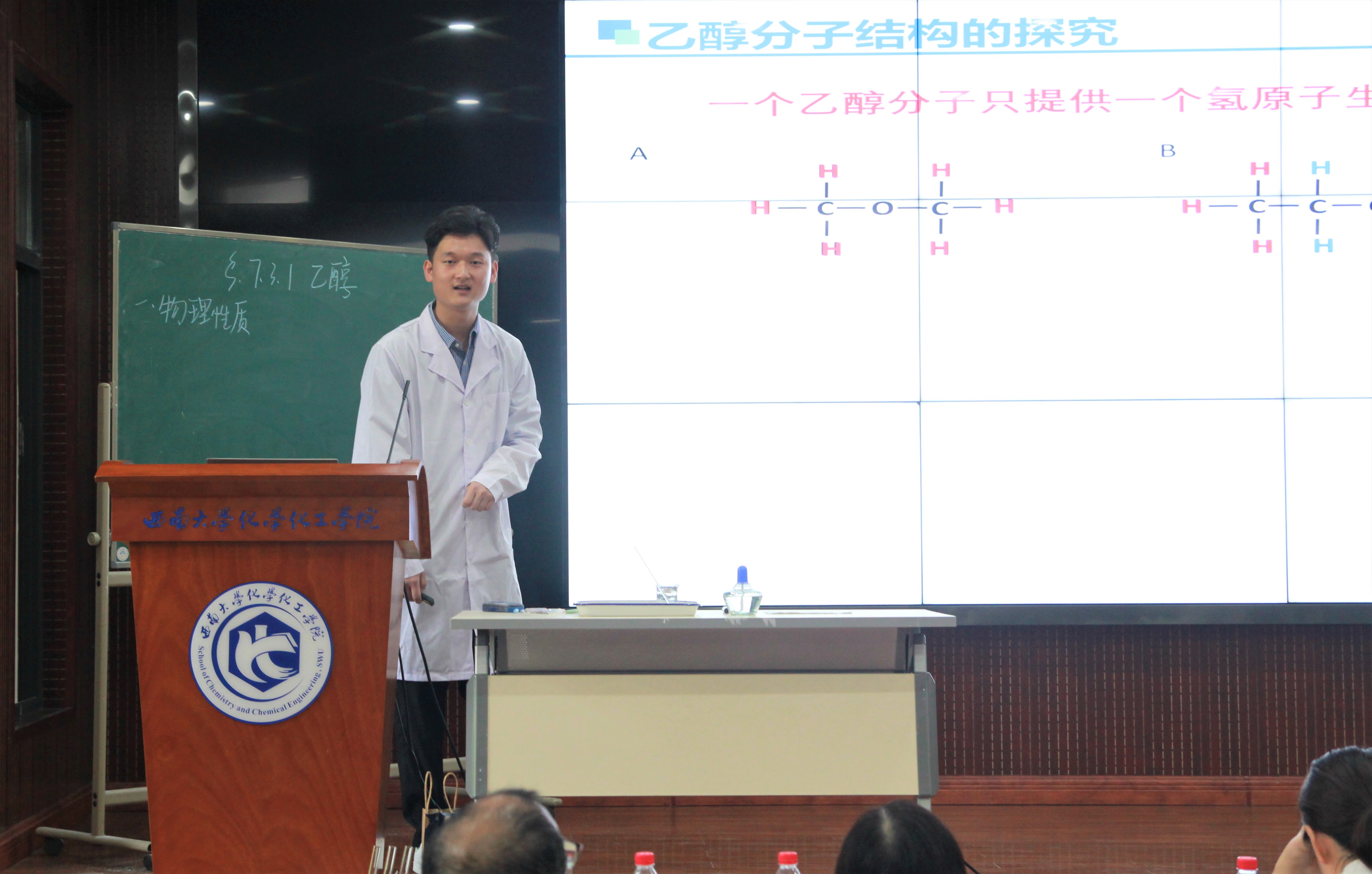 此次比赛从教风教态、思维能力、教学设计、教学过程、教学方法、教学基本功、教学特色等方面对参赛选手进行了综合考核。活动伊始,21名同学分别展示了自己的8分钟模拟教学。同学们的模拟授课各有特点,11号选手李文同学和20号选手钟得洪同学将化学实验搬上课堂,充分体现了化学学科特色;18号选手魏福贤同学积极与学生互动,让学生成为课堂的主人;9号选手刘婕同学和19号选手李依静同学善用教学教具,将信息化技术融入教学当中。21名选手呈现了精彩的课堂缩影,也赢得了现场观众的阵阵掌声。李文、肖明君、李晓然3名同学凭借自己的优异表现获得此次比赛的一等奖,吴荷艳、丁丹等4名同学获得二等奖,鲍鑫、李江华等5名选手获得三等奖,荣宇、吴孟欣等6名同学获得优秀奖。
