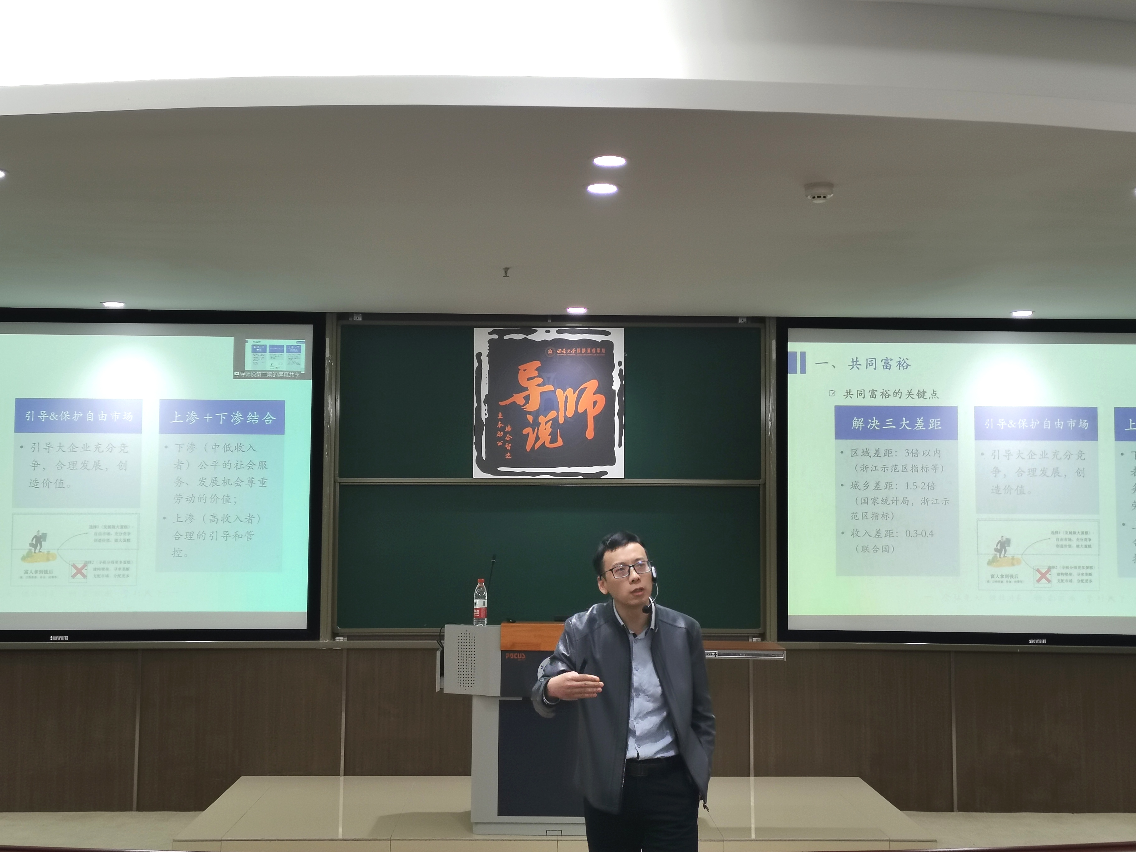 分享会上,同学们就“二氧化碳加氢制汽油是否会促进双碳目标”“‘房票’提案对社会的影响”和“区域农户微观研究”等问题积极提问,刘老师从多个角度对同学们的提问逐一进行了解答。同学们纷纷表示,刘老师对于共同富裕与双碳目标的分享,讲得非常清晰,给大家留下了深刻的印象和思考。