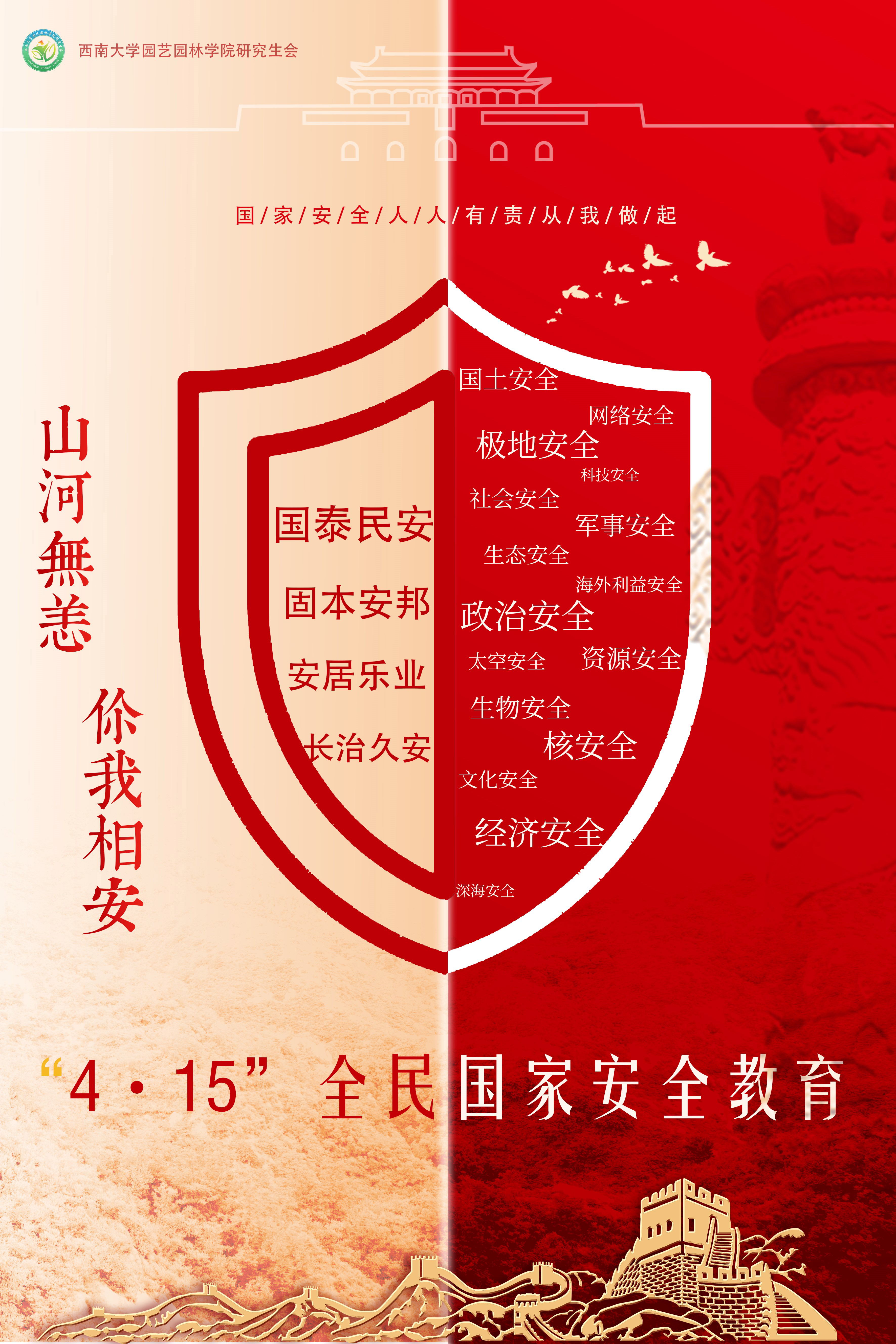 在第七个全民国家安全教育日来临之际,园艺园林学院研究生会开展了主题为“树牢总体国家安全观,感悟新时代国家安全成就”的系列活动,为迎接党的二十大胜利召开营造良好氛围。