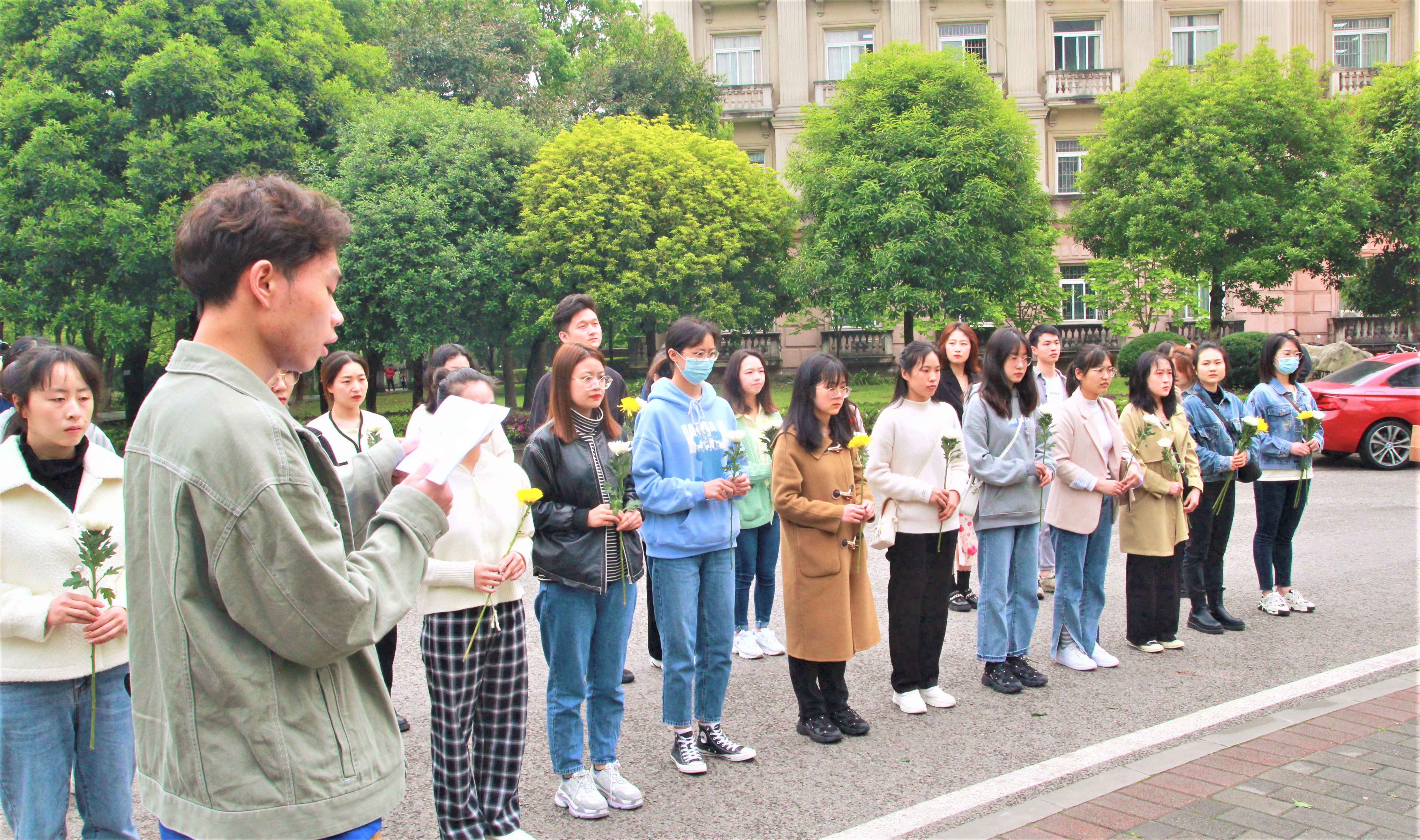 随后,研究生会组织全体成员前往袁隆平院士雕像前,献花悼念袁隆平院士。现场全体学生鞠躬默哀,全体合唱《我有一个梦》,表达对袁隆平院士的崇高敬意和深切缅怀。接着大家按队列顺序依次敬献花和卡片,怀着美好的期待,相信这一张张穿越时空的思念可以到达天堂邮局。