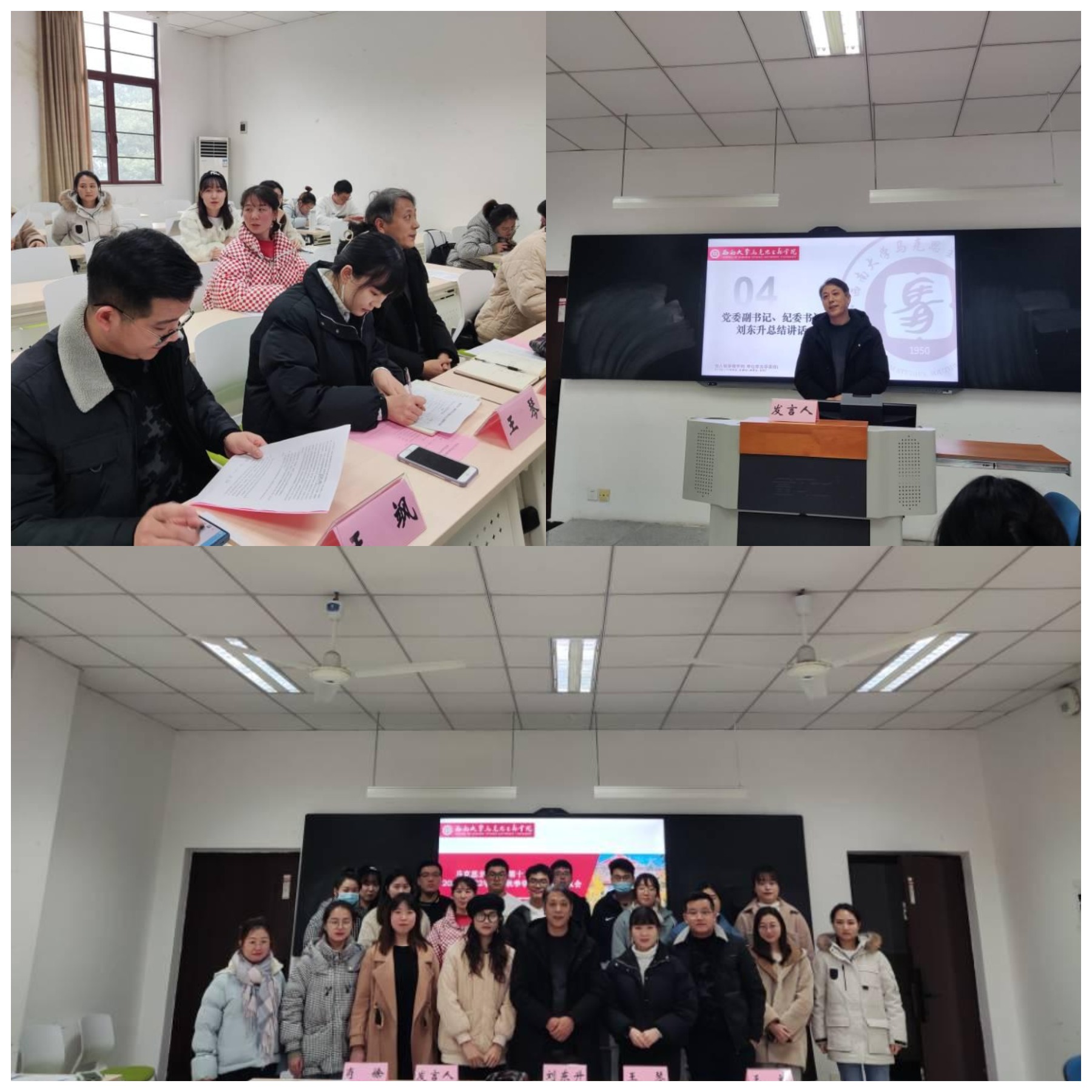 为持续深化研究生会组织改革,进一步规范研究生会述职评议工作,按照《关于推动高校学生会(研究生会)深化改革的若干意见》《关于高校学生会(研究生会)述职评议会的工作指引(试行)》等文件要求,12月30日下午,马克思主义学院于研三教室召开第十二届研究生会2021-2022学年(秋季学期)述职评议会。马克思主义学院党委副书记刘东升、研究生辅导员王飒、校研究生会代表、食品科学学院研究生会代表、马克思主义学院第十二届研究生会全体成员及学院研究生代表等出席评议会并参与评议。会议由马克思主义学院研究生辅导员王飒主持。