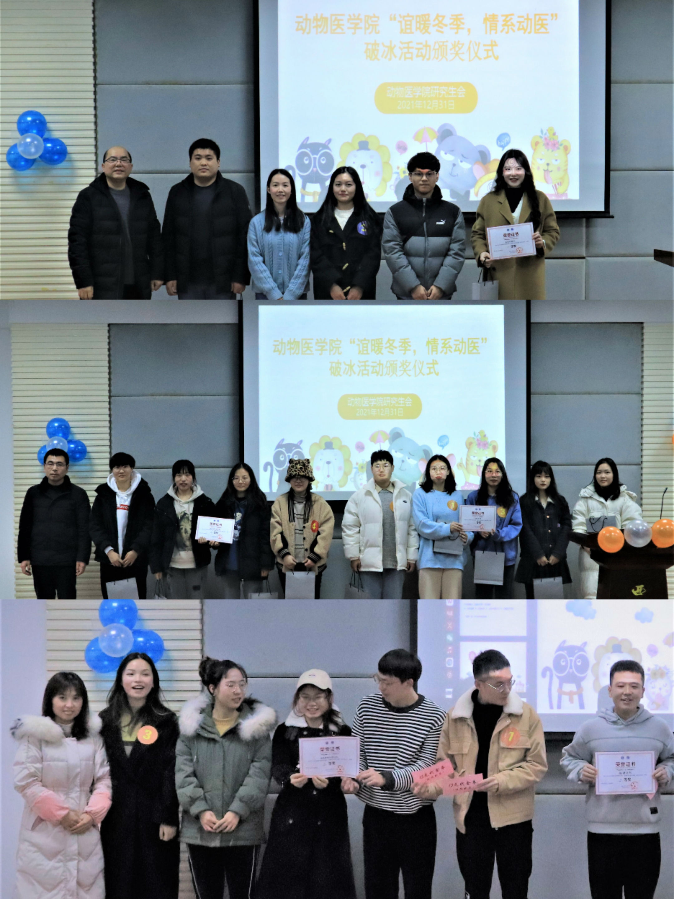 凡是过去,皆为序章。习近平总书记指出,“建成社会主义现代化强国,实现中华民族伟大复兴,是一场接力跑,我们要一棒接着一棒跑下去,每一代人都要为下一代人跑出一个好成绩。作为新时代的新青年,我们走得再远也不能忘记了来时的路。忆史思今,我们青年一代更应当从历史中吸取滋养初心的养料,彰显属于我们这一代人的担当和砥砺前行的青春力量。”至此,动物医学院2021年特色迎新“谊暖冬季 情系动医”破冰活动圆满落幕,此次活动促进了同学们在专业知识、英语能力、实验室安全技能以及四史学习等方面的提升,加深了同学情谊,同时也呼吁同学们为保持身心健康,释放科研压力,要多走出实验室和图书馆。