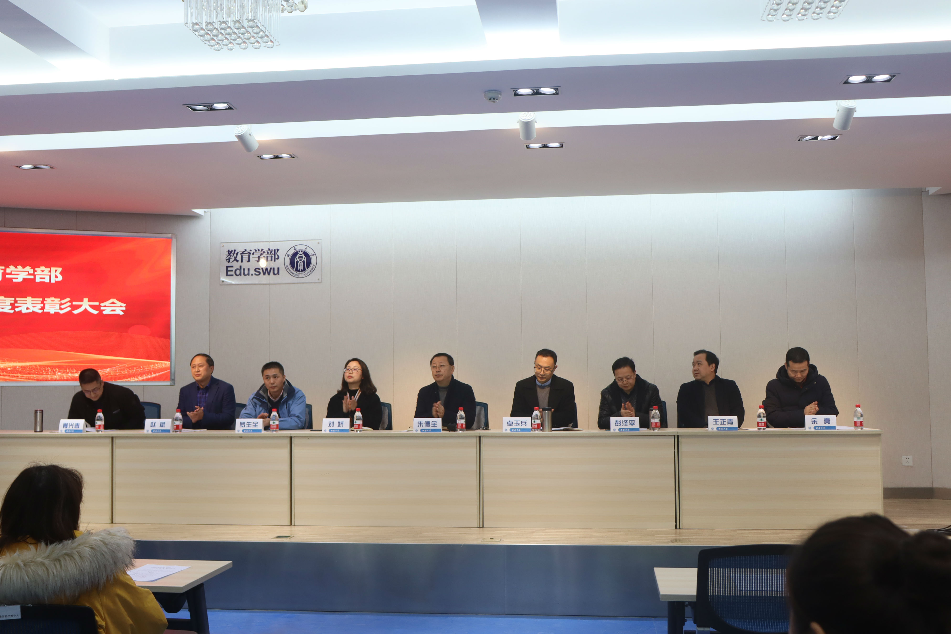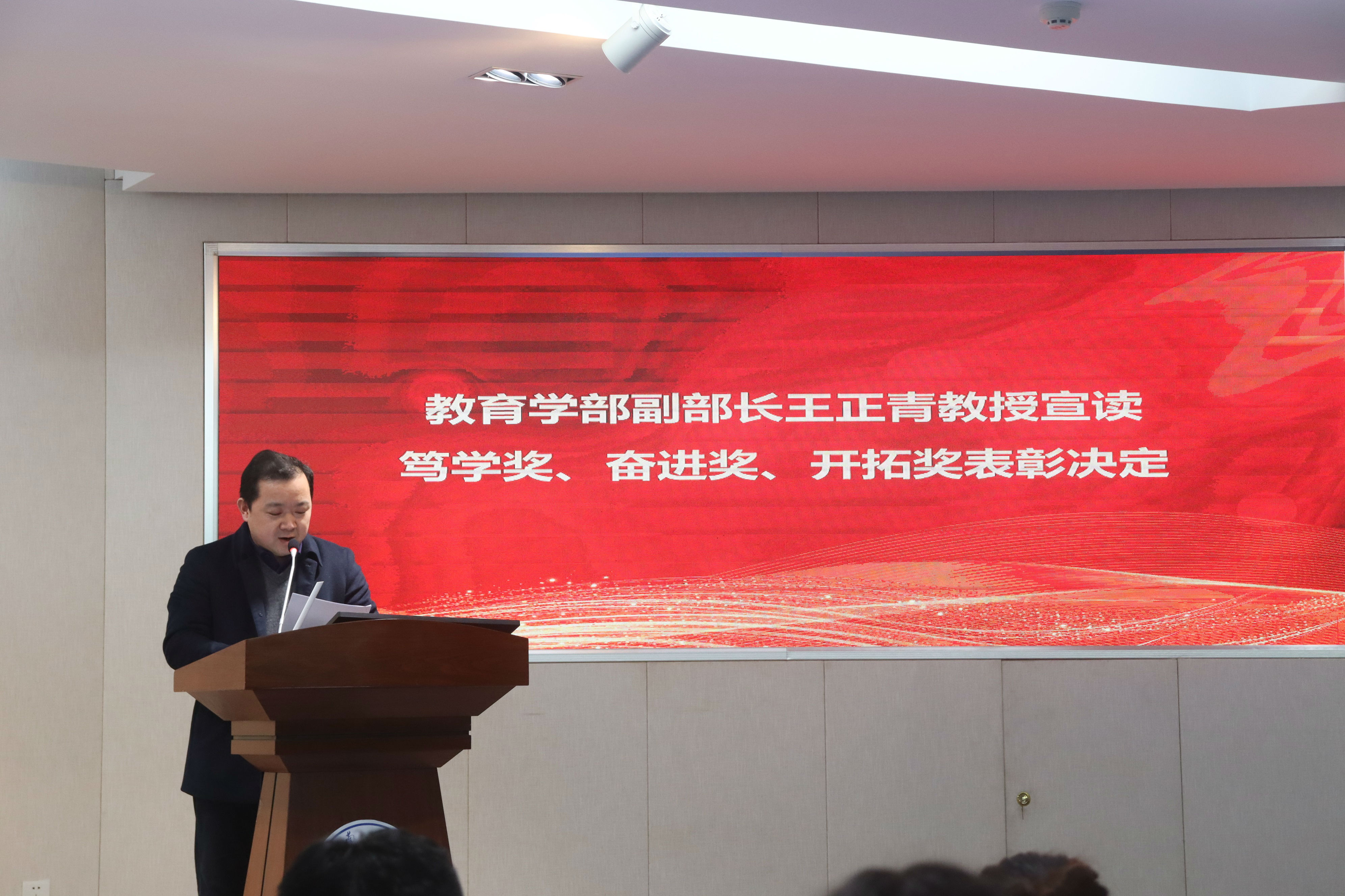会议伊始,副部长王正青教授宣读国家先进集体,重庆市级、校级和教育学部先进集体和先进个人、共青团先进集体和个人,“挑战杯”“志汉杯”等国家级、校级和教育学部各类学术竞赛获奖团队和个人等获奖名单。
