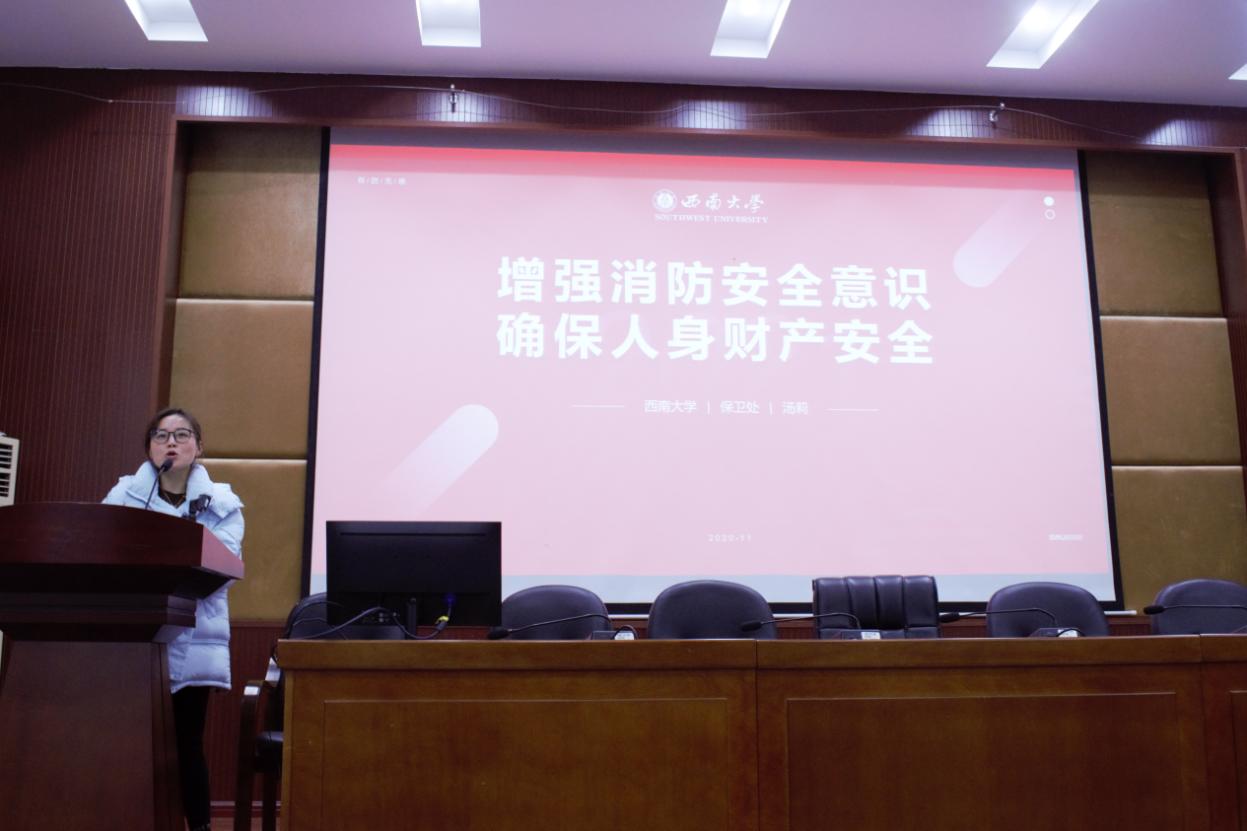汤老师在消防安全知识讲座中,通过列举真实的案例,尤其是最近几年发生在校园中的安全事故,讲解了与研究生息息相关的实验室和宿舍的安全,让同学们了解和掌握了如何预防火灾、扑灭火灾、火灾现场如何逃生等消防安全知识。并用生动形象的视频为同学们展示了灭火器的使用方法和火灾发生后应如何正确自救。