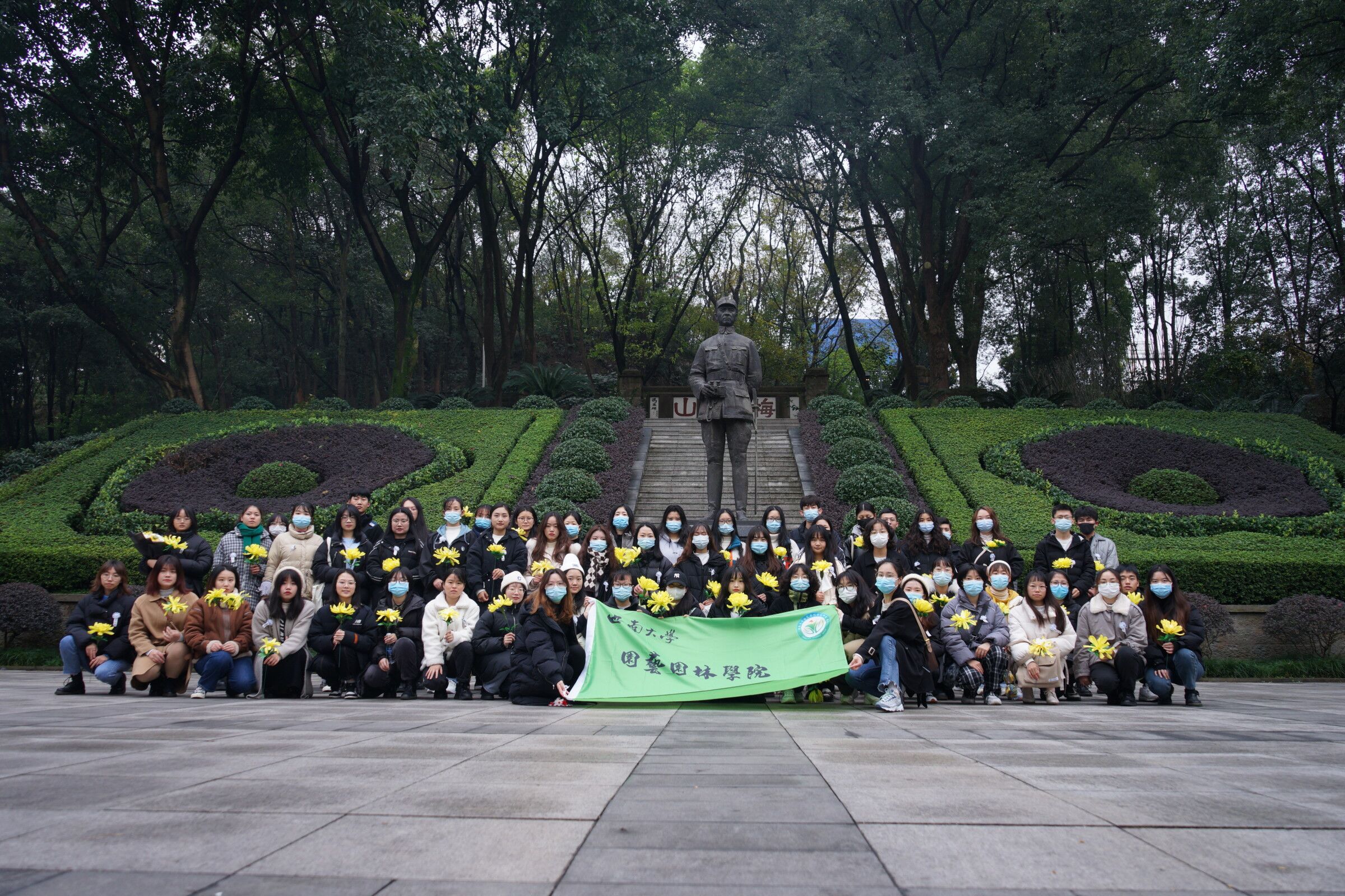 秋风吹过树梢,散去满树玉叶,冬至即将到来,寒意触人沉思。在国家公祭日来临之际,为缅怀历史、展望未来,12月12日上午,我院研会组织各团支部开展了张自忠烈士陵园祭扫活动。