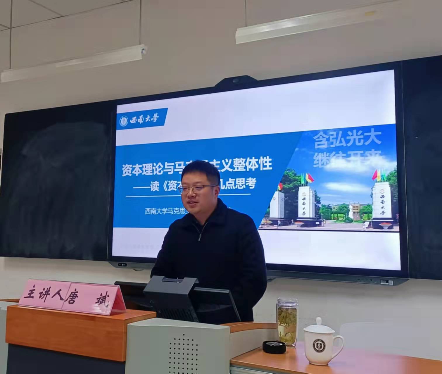 唐斌老师从马克思主义基本原理的视域出发,对《资本论》进行了深刻的分析,凭借其诙谐幽默的教学风格,适当列举生动有趣的贴近生活的例子,让同学们在轻松愉悦的教学氛围里进一步加深对《资本论》这本马克思主义经典著作的学习。
