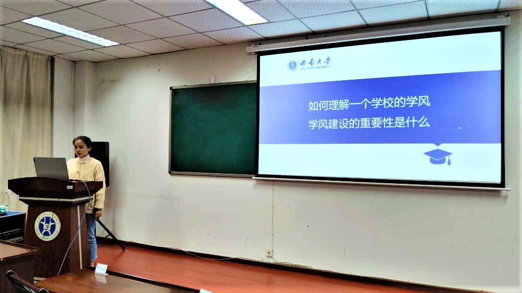 杨骏老师课题组以“建设好学风,争做人上人”为主题开展本次活动,同学们集中观看提前制作好的PPT,并且积极参与到学风建设的讨论,最后总结出:诚信为学,恪守学术道德,要时刻用学术道德来指导自己的学术实践活动,把学术规范升华为行动纲领,不闯学术的“红灯”。