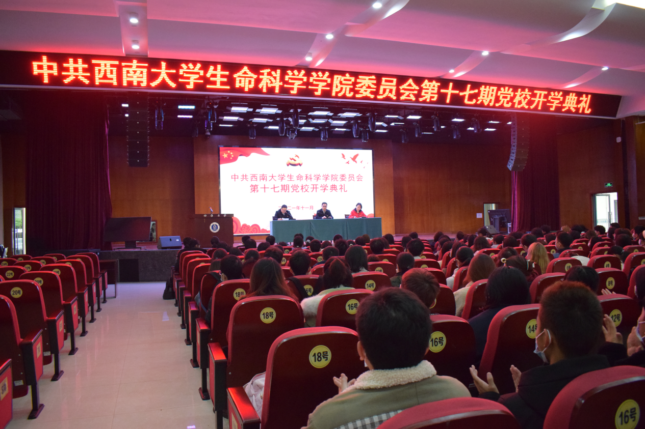 为适应新形势党建发展的要求,做好党员发展工作,响应中国共产党第十九届中央委员会第六次全体会议精神,2021年11月12日下午14:00,中共betway西汉姆联生命科学学院委员会第十七期党校开学典礼在学生处107会议室顺利召开。参加此次会议的有学院党校校长、学院党委书记蒋寒,学院党委副书记、纪委书记陈渝,学院党校副校长、党委副书记石莹华,学院党校班主任、研究生辅导员谷彩霞以及全院190余名学员。典礼由陈渝同志主持。