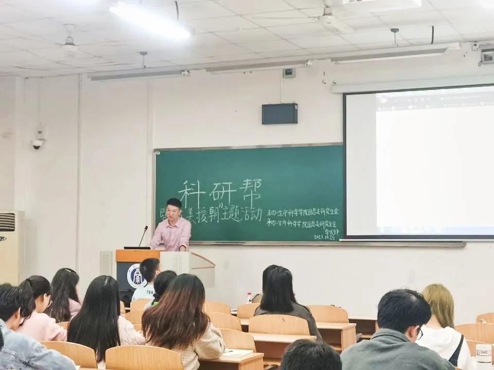 为推进研究生学术学风建设,呼吁研究生在力求学术创新的同时恪守学术道德,遵守学术规范,锻造学术品格,同时将研究生党员“我为师生办实事”落实落细落地,生命科学学院研究生团总支于10月25日下午6:30,举办研究生“科研帮”研究生学风建设主题活动,由优秀研究生代表2019级水生生物学硕士研究生朱艳秋、2019级微生物学博士研究生龚真分享文献检索的方法技巧,同时特别邀请到第七届中国国际“互联网+”大学生创新创业大赛高教主赛道金奖获得团队的负责人2019级植物学博士研究生曾俊岚分享参赛经历和项目宣讲。参与此次讲座的有学院研究生辅导员谷彩霞以及学院各年级研究生代表。