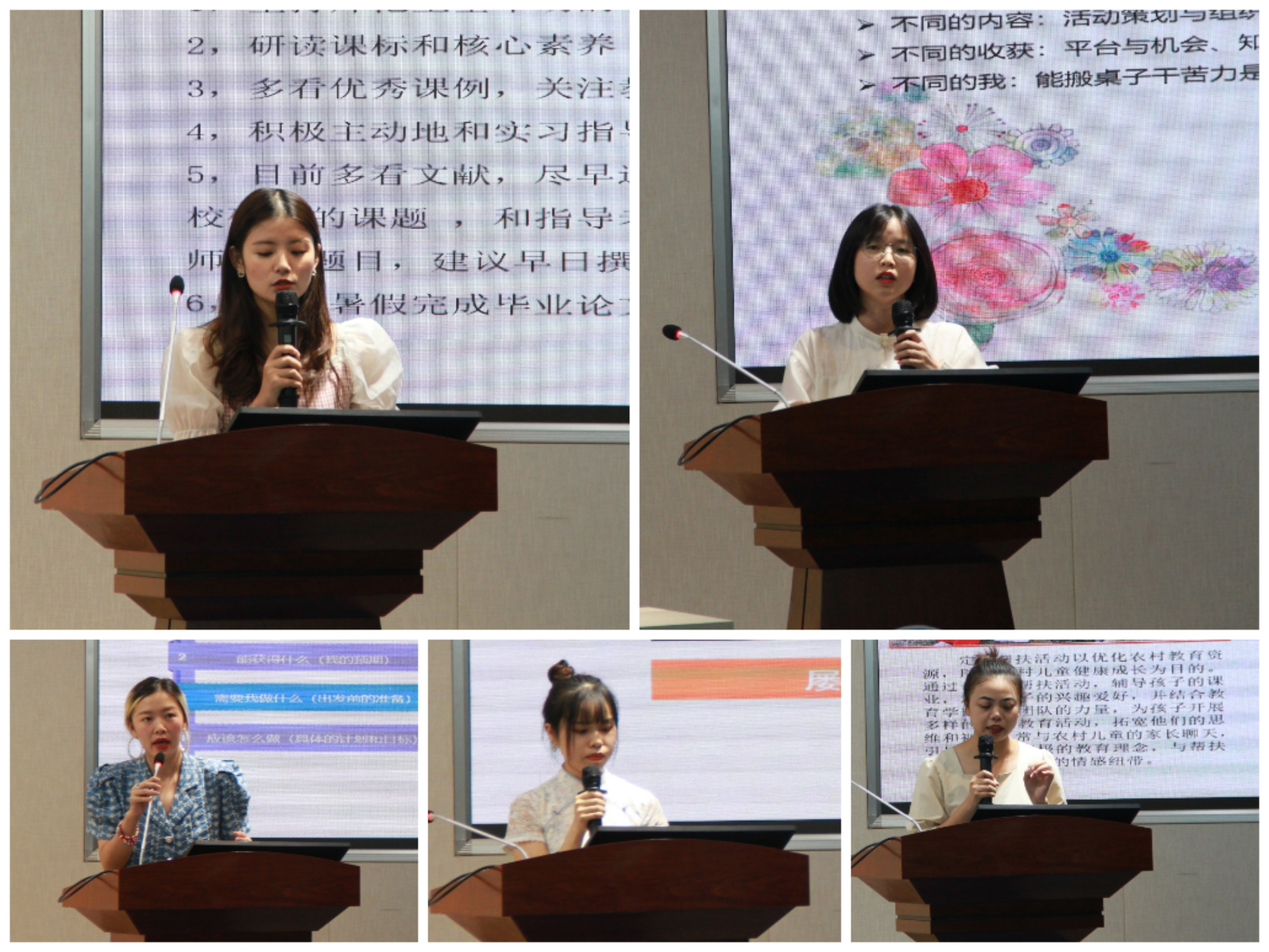 紧接着,但金凤、罗雨瑞等几位优秀的学生代表就各自的经历与同学们进行了经验交流。博士生代表但金凤围绕学术研究与论文写作展开了分享,帮助新同学了解了撰写与发表学术论文的流程。交流访学代表罗雨瑞则为同学们讲述了自己参加访学项目的经历,与同学们共享自己的收获。专业硕士代表唐瑞以自己的实习经历为基础,把自己的收获概括为“经验、反思,交流”,为同学们提供了就业方面的参考。社会实践代表段亚男展示了自己参加社会实践工作的成果,鼓励大家积极参与实践活动,从实践中感悟,在实践中成长。最后学生工作代表张雨虹就自己的学生工作经历给予了新同学许多宝贵的建议,为大家指明了努力的方向,并激励大家努力超越自己,尽情享受青春。