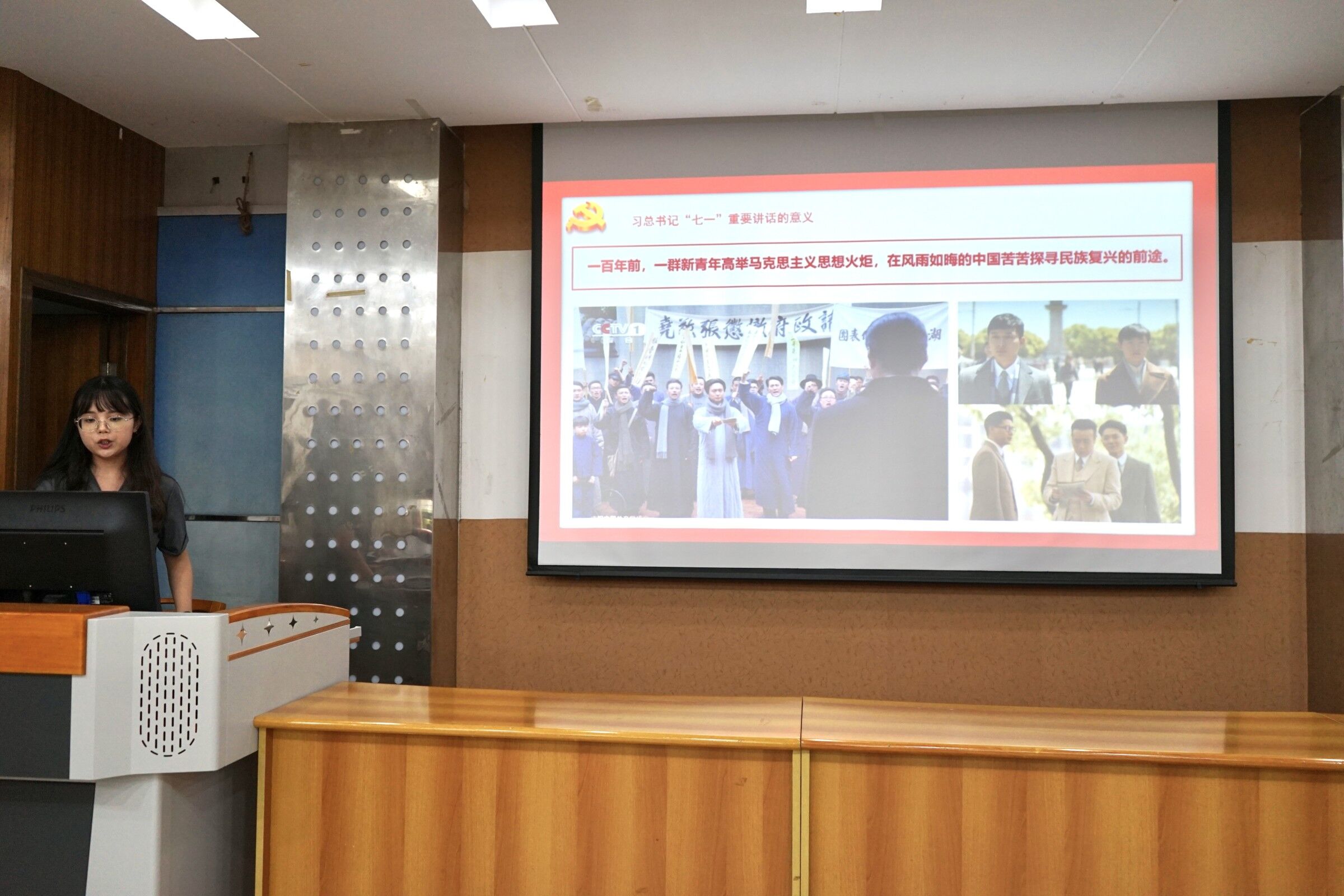 随后,阳佩琳同学结合重庆当地政府响应本次讲话精神的实例对习近平“七一”重要讲话内容及其重要意义进行了深入讲解,号召研会成员认真学习贯彻“七一”重要讲话精神,深刻领会和把握“七一”重要讲话的重大意义,并将其贯彻落实到工作中去。