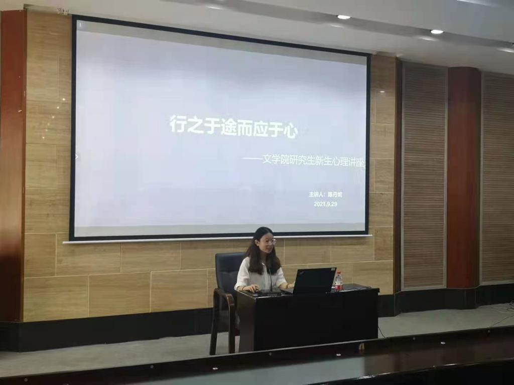 组织开展文学院研究生新生心理健康讲座。讲座邀请心理学部研究生二年级陈丹妮同学为主讲人。她通过自身经历讲解了在生活中如何调整心态、处理人际关系等诸多问题。