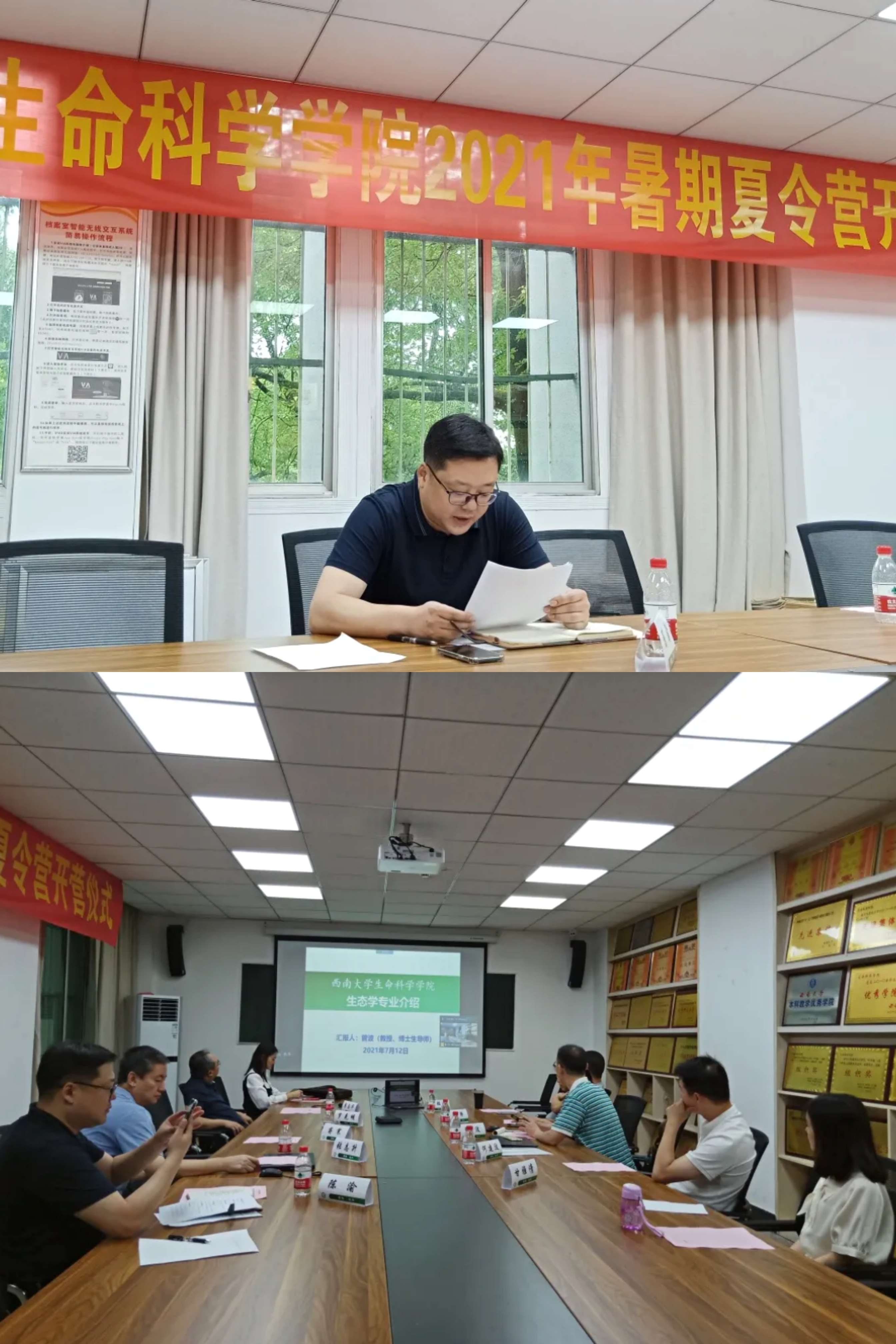 7月12日上午9点,开营仪式在国歌声中拉开帷幕,学院党委书记蒋寒、院长罗克明、党委副书记陈渝,副院长张志升、副院长廖志华,各专业导师曾波教授、魏静教授、罗毅平研究员、何建波副研究员以及研究生辅导员谷彩霞老师出席本次开营仪式。蒋寒书记为夏令营致辞,勉励营员在夏令营活动中向优秀的前辈学者学习,充分展现自己的能力特长,进一步加强对学院的了解。罗克明院长、廖志华副院长分别就学院的发展历程、科研体系、师资队伍、重大科研成果、招生与培养体系、奖助政策等作详细介绍,鼓励所有营员在活动中学有所获。专业导师们分别向营员们详细介绍专业招生名额及研究方向。