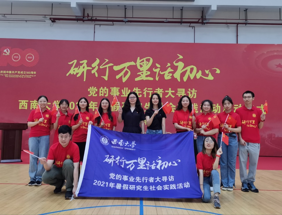 2021年7月7日17:00,betway西汉姆联2021年暑假研究生社会实践活动“研行万里话初心”启动仪式在学校中心体育馆举行,学校党委副书记潘洵、党委宣传部、研究生院、党委研究生工作部相关负责人出席仪式并讲话,各二级研究生培养单位党委副书记、研究生辅导员,各校级实践团队指导教师、队员共600余人参加仪式。我院党委副书记田丽、研究生辅导员任娟以及10名研究生代表作为本次实践活动的主要带队老师和成员参与了此次启动仪式。