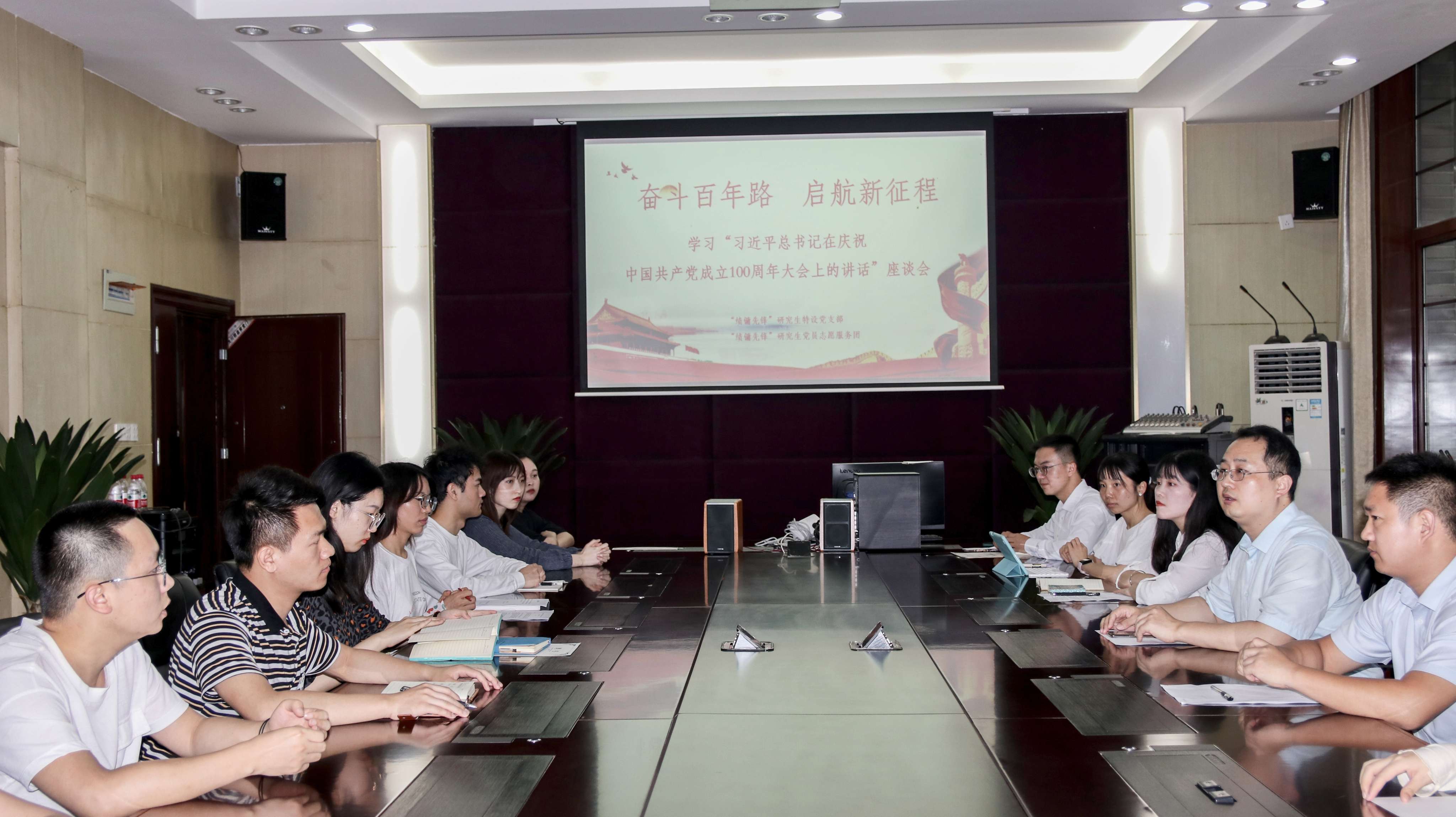 为深入学习“习近平总书记在庆祝中国共产党成立100周年大会上的讲话”精神,7月1日下午,“绩镛先锋”研究生特设党支部、“绩镛先锋”研究生党员志愿服务团在3201会议室,开展主题为“百年接力 强国有我 请党放心”座谈分享会。学院党委副书记李长松、研究生辅导员汪全洲参会,与同学们一起学习习近平总书记重要讲话,畅谈感想、体会与收获。