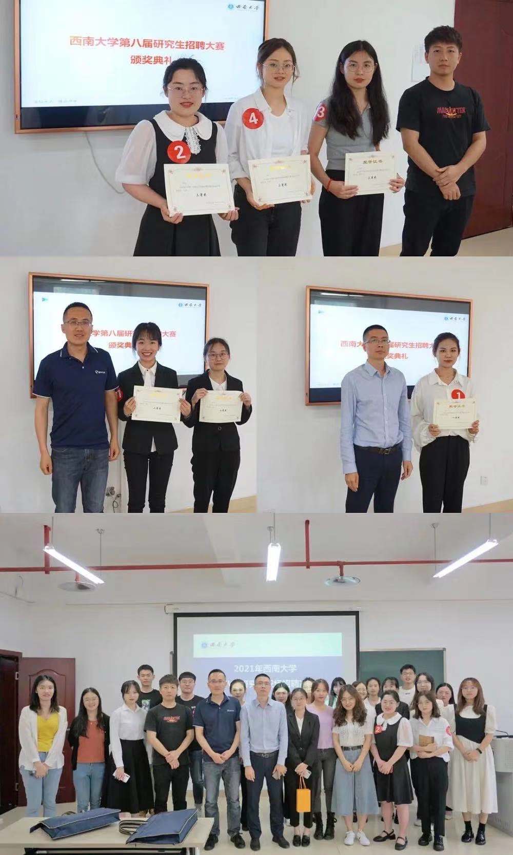 本次大赛于5月初启动,分为企业专场和教师专场。前期开展了一场培训讲座,邀请了专业的老师围绕简历制作、面试技巧、教师素质等进行培训;其后的简历筛选环节收到全校近百份简历,经过专业的简历初筛后,14位研究生晋级企业场决赛,6位研究生晋级教师场决赛。