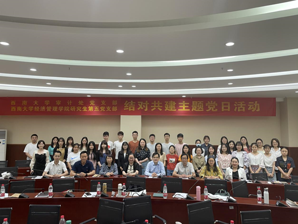 研究生第五党支部与审计处党支部共同举办“深学党史增强信念,细悟《条例》夯实基础”结对共建主题党日活动。审计处党支部书记、审计处处长杜勇带领与会同志学习了《中国共产党普通高等学校基层组织工作条例》。研究生第五党支部党员马文龙和张懿萌分别分享了《一支股票背后的红色经济史》《百年大党正青春,时代精神永流传》党史微党课,余月月结合学院党委制作的《我身边的改革开放》微党课以及个人成长经历,回顾梳理了改革开放四十年的历史进程和时代经验。
