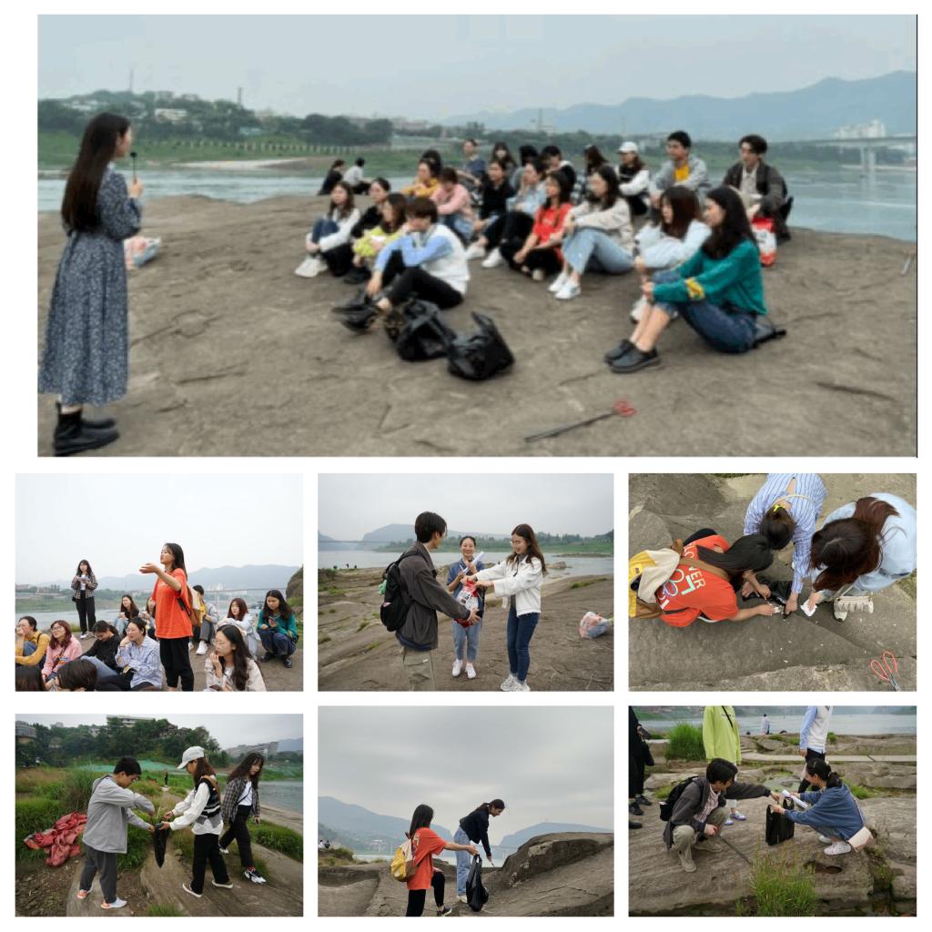 辅导员邓珍珍老师指出,“党史学习教育要与实践相结合,五四青年节即将来临,新时代青年要勇于担当。今天大家在江边看到有不少垃圾,那么我们就应该随时随地践行党的生态文明理念,将环保意识内化于心、外化于行,并思考如何将环保意识‘润物细无声’地渗透进大众的脑海中,把党史学习教育落到实处。”在邓老师带领下,研会成员分组进行拾垃圾比赛。经过大家努力,嘉陵江边的烟头、瓜子壳等垃圾得到了有效清除。研会成员们以实际行动感召和带动广大居民和游客杜绝随处扔垃圾、抛杂物等不良行为,共同维护江边整洁优美的环境。