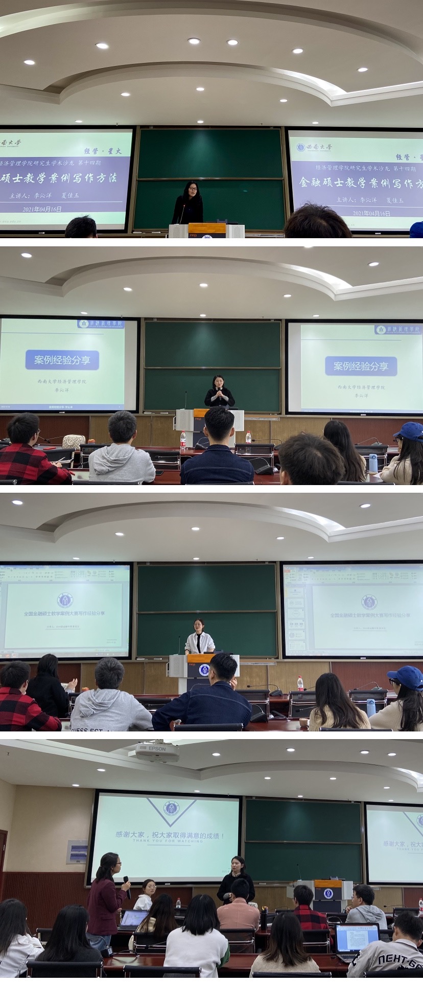 为提升学院研究生培养质量,营造良好的学术氛围,2021年4月16日15:00,学院“经管·星火”研究生学术沙龙第十三期(博士生专场)与第十四期(金融硕士专场)分别在学院A204和B204举行。