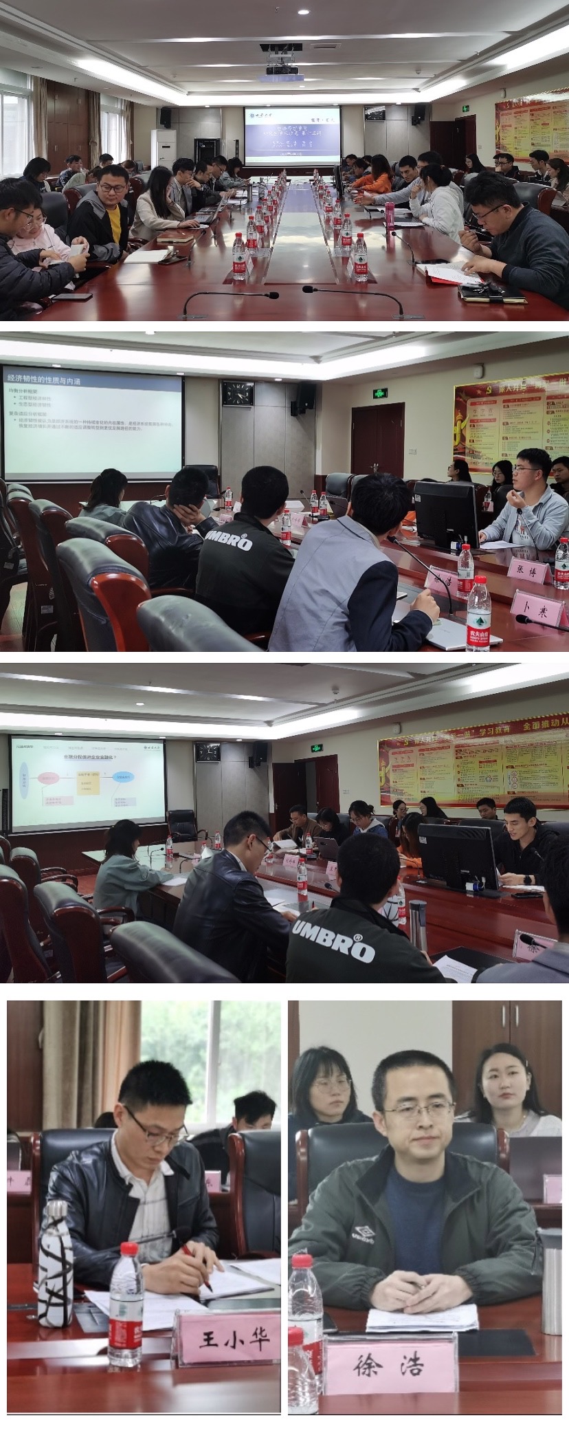 王小华、徐浩两位老师对两位同学的论文进行认真地分析和点评,就两篇论文的选题意义、框架逻辑、数据和模型选取、结论总结以及文字表述等提出针对性的意见和建议。他们认为论文写作中需用词精准、用语流畅及前后统一,要注重数据、变量和方法选取应符合现实实际,同时提出参考文献应丰富和及时更新。期间,有博士研究生就论文中二次解释实证结果等问题向点评老师提问,两位老师就同学们的提问进行了热烈地讨论和耐心地解答。